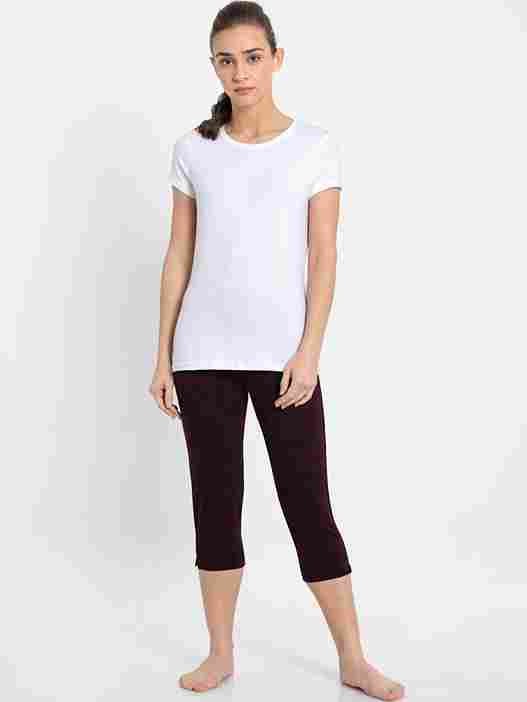 Jockey Women's Super Combed Cotton Elastane Stretch Slim Fit Printed Capri with Side Pockets Wintasting Printed #1300