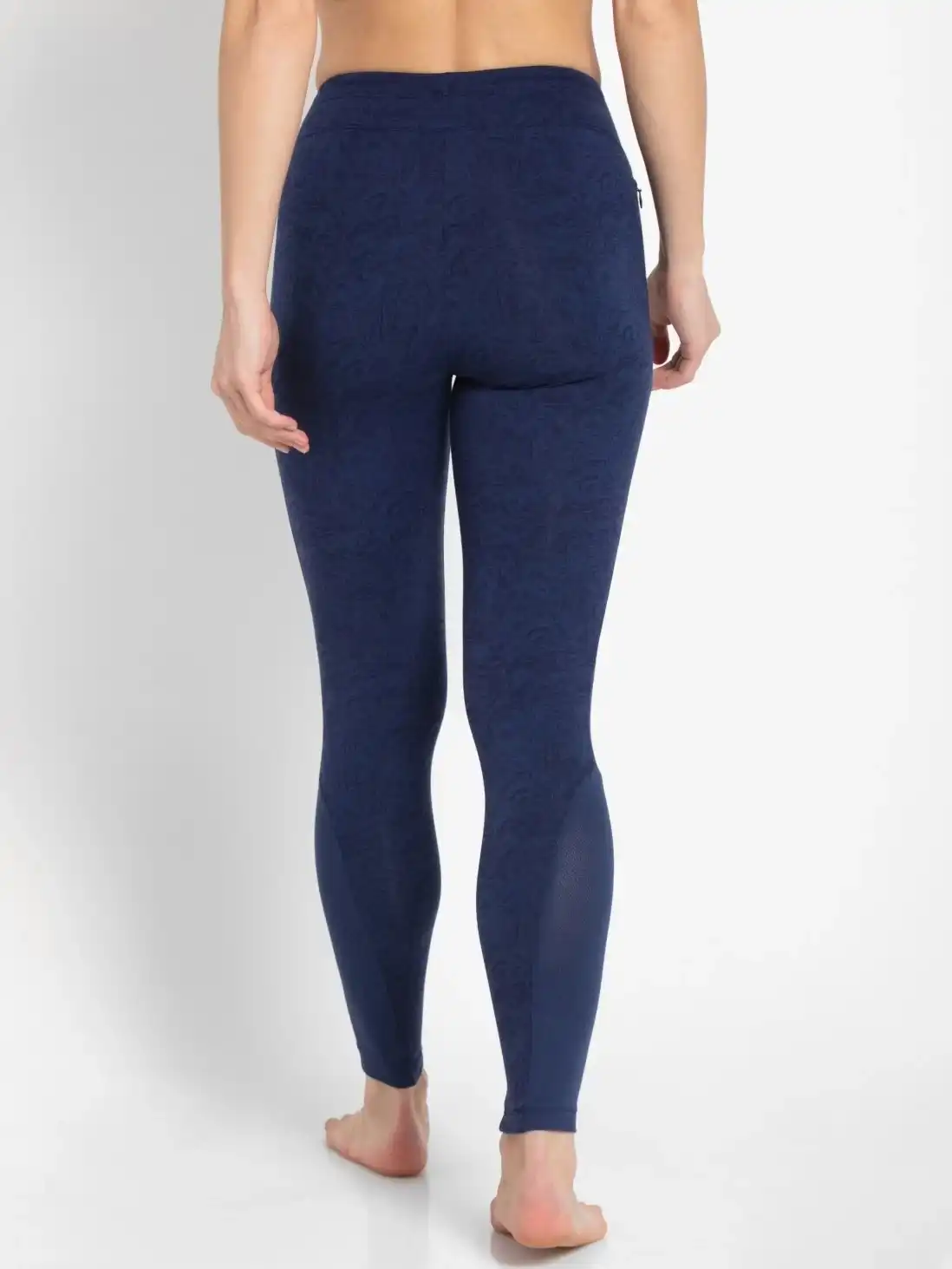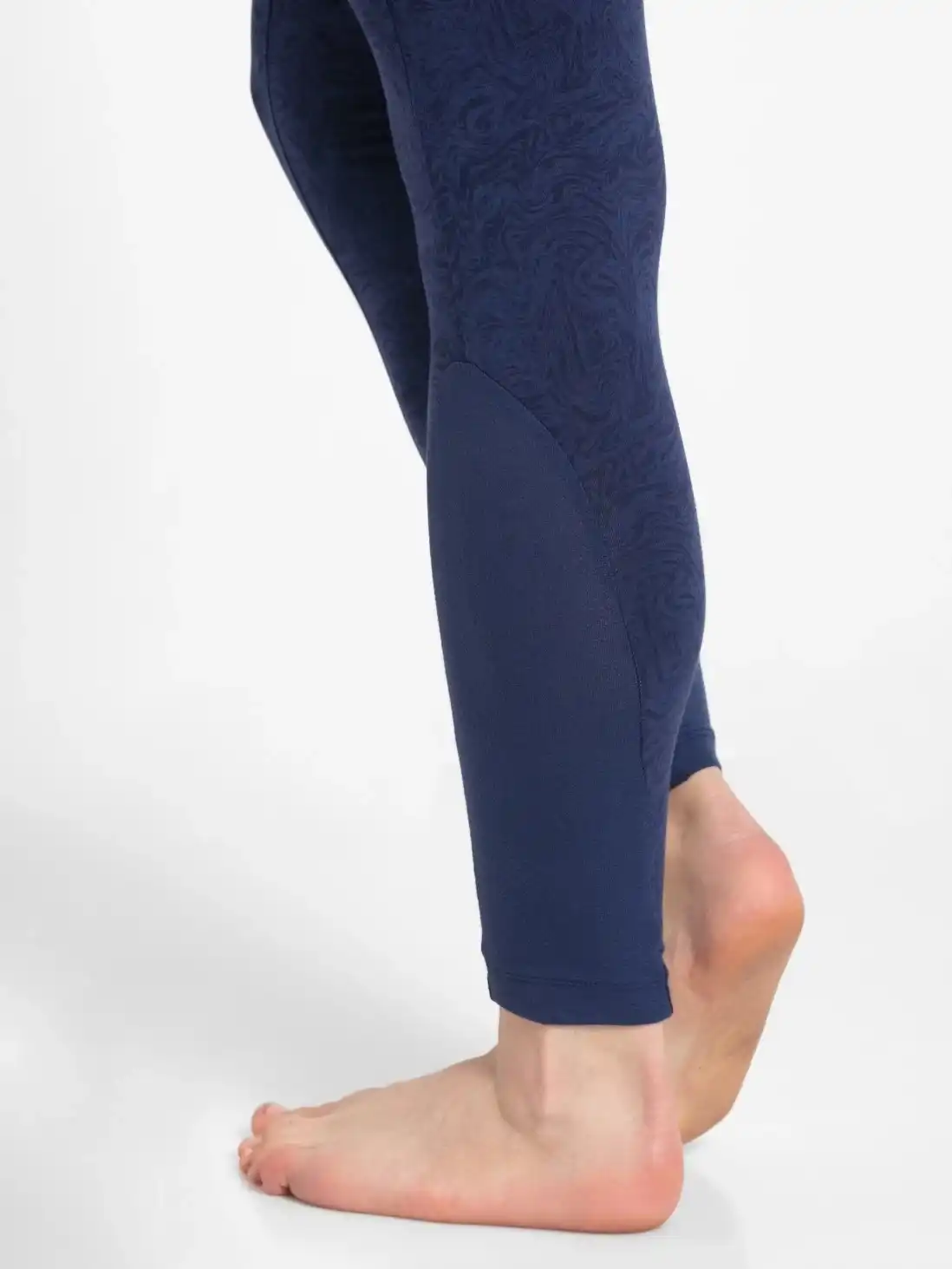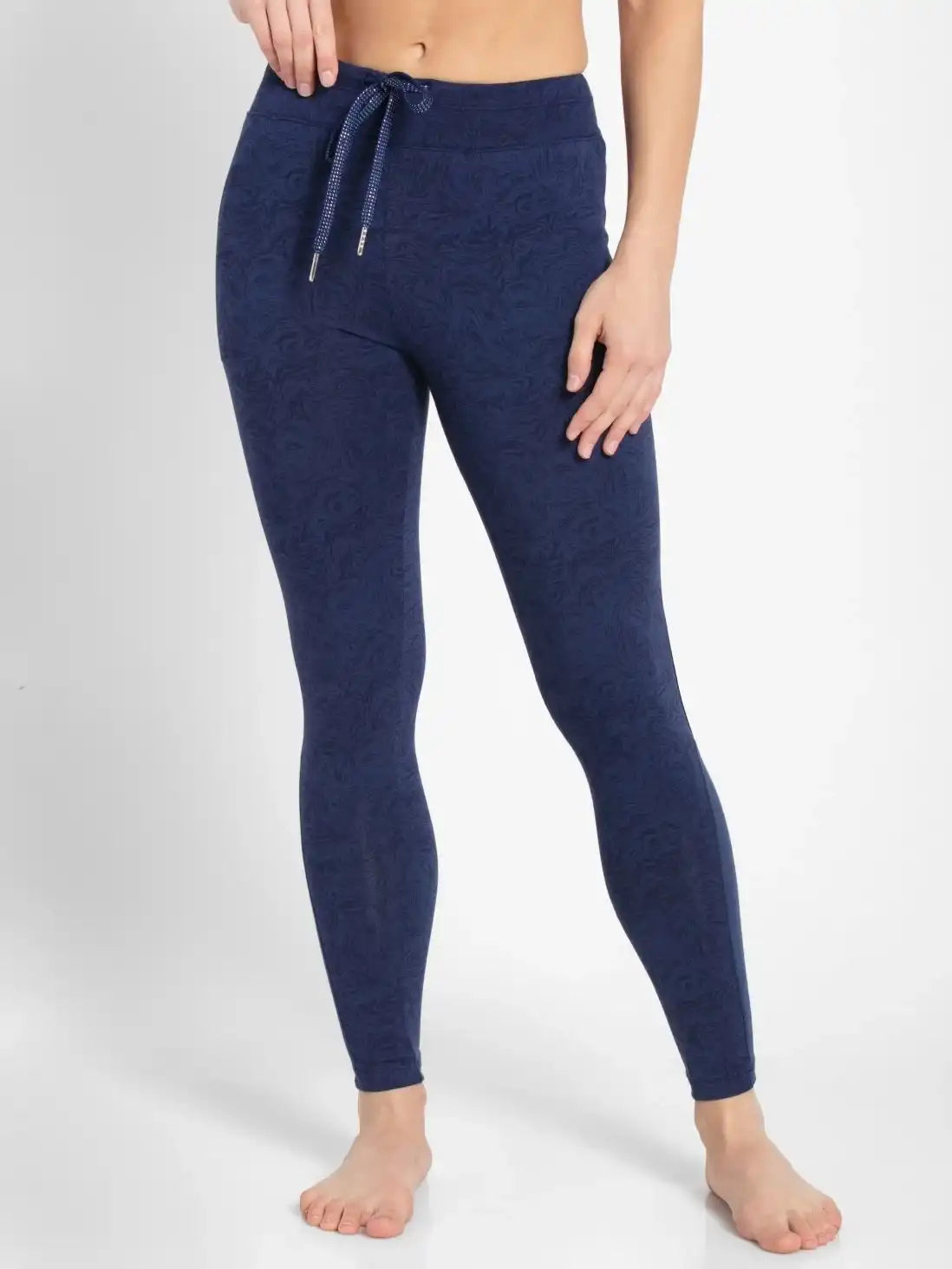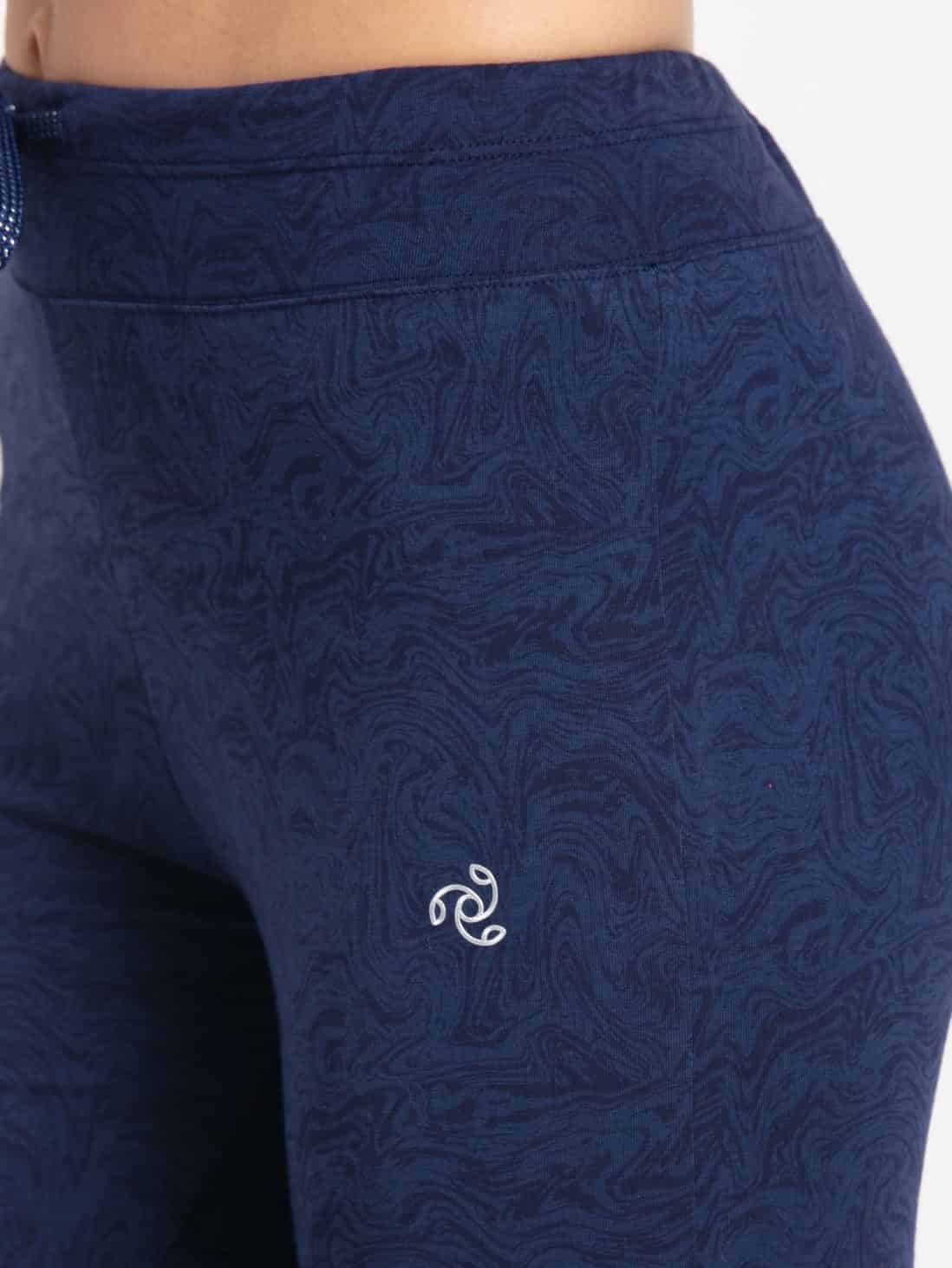 Jockey Yoga Pant Leggings with Concealed Side Pocket & Drawstring Closure - Imperial Blue Melange Printed, Style #AA01