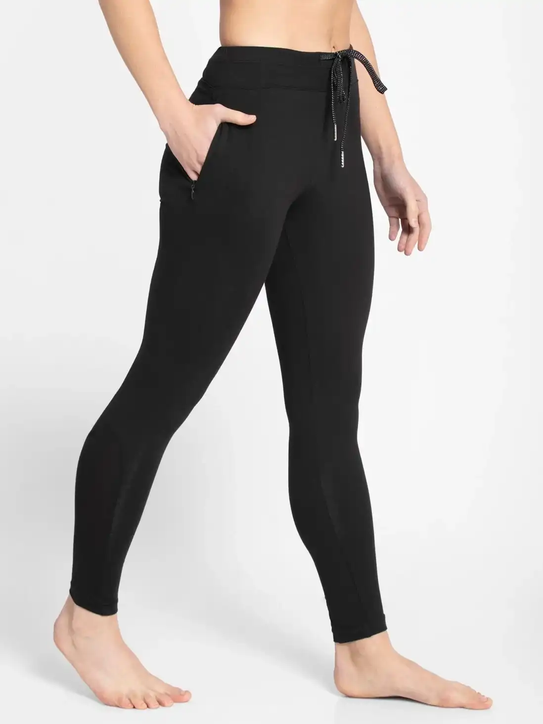 Jockey Yoga Pant Leggings with Concealt & Drawstring Closure - Black, Style #AA01