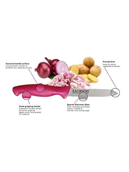 Non-food grade pp material when comes in contact at high temperature, its particle migrates to food items which people consume and face health hazard while this is not the case with food grade PP material used in KAI Knives