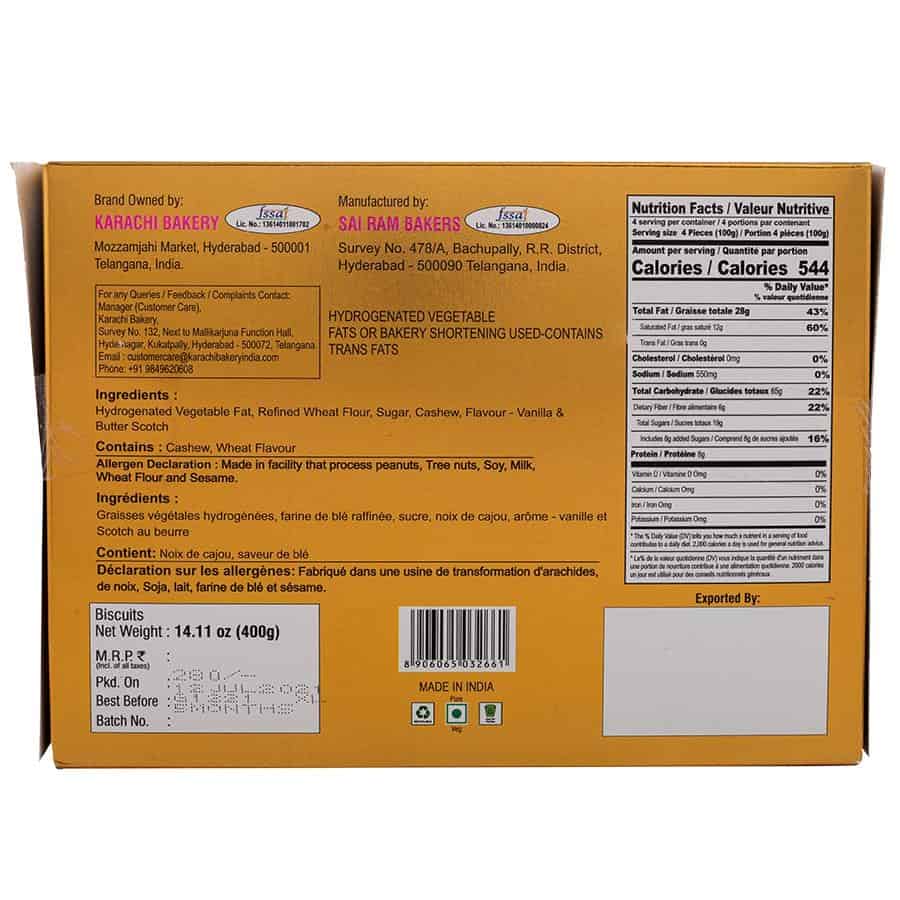 Karachi Bakery Cashew Biscuits are bite-size biscuits. They are made with high-quality ingredients. It is enriched with a great taste of fresh and delicious cashews. These cookies make a perfect snack whenever you feel hungry. It is sweet, exotic taste and crispy and healthy cookies. It is a perfect healthy treat for your body. Now savour the taste of these biscuits with your morning or evening tea or coffee. It does not contain any added flavouring or preservatives.