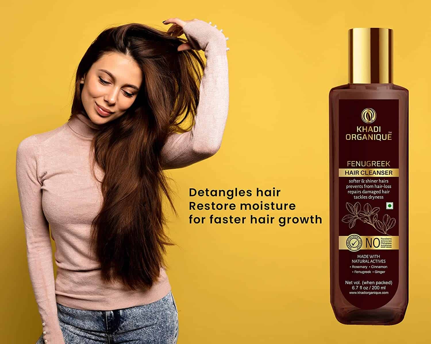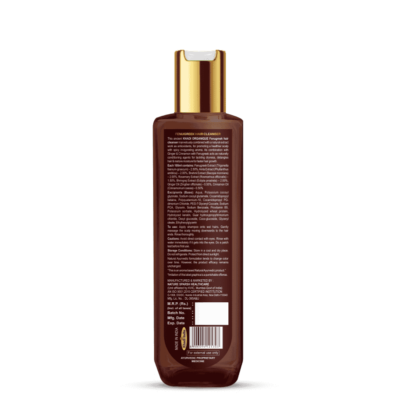 KHADI ORGANIQUE As combination with Ginger, & Cinnamon with Fenugreek acts as naturally conditioning agents for tackling dryness, detangles hair & restore moisture for faster hair progress.