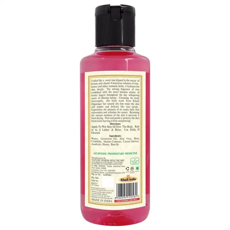 Khadi Organique Natural Rose & Honey Body Wash, 210ml