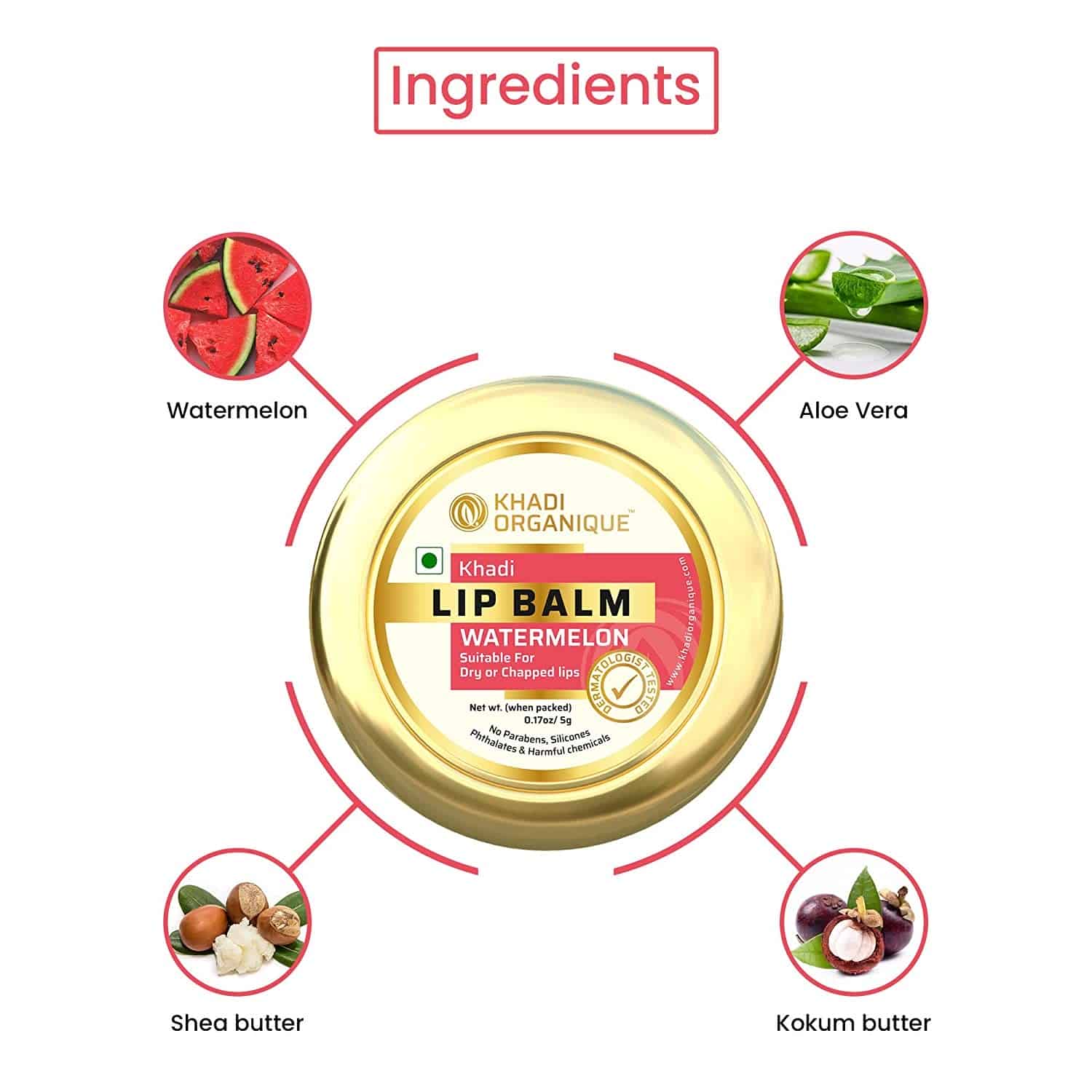 Khadi Organique Watermelon Lip Balm, 5g