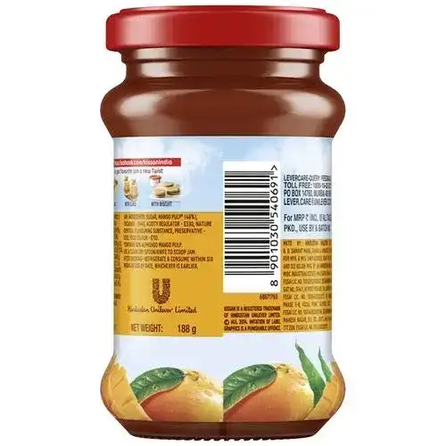 • Kissan Mango Jam is made with 100% real Alphonso fruit Ingredients • Is easy to use and can be enjoyed on the go every morning • Enjoy it best with Bread, Roti, Paratha or Dosa for a wholesome breakfast • Turns boring breakfast into an empty plate • Spreads easily with a spoon or a knife • Carefully sealed in impermeable glass packaging to retain the best flavour and taste of product