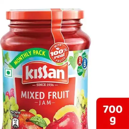 All your favorite fruits come together in Kissan Mixed Fruit Jam. A medley of flavours from 8 fruits such as Banana, Papaya, Apple, Pear, Pineapple, Mango, Grape and Orange blended in to one lip smacking jam. Kissan jam is the best jam with the goodness of your favorite 8 fruits. Kissan Mixed Fruit Jam is best partnered with bread to provide yummy on the go breakfast for your kid every morning. Think of different ways to eat it in. Spread it on a crunchy cracker, roll it up in a chapatti, drink it stirred in milk or whip up a bread and Jam delight for your kids breakfast with an assortment of flavours. Started in 1934, Kissan is a popular brand in India. Kissan is more than just jams, ketchups and squashes. Its all about kids eating happily & growing up happily. Kissan Jams yummy and fruit based sweet spread keeps both, mothers & kids happy. The brands reassurance to mothers is that they can make breakfast times fun yet wholesome every morning with the Kissan range of fruit jams that are made with 100% real fruit Ingredients! Remember craving something utterly sweet? This is your answer to that in a packed sweet spread bottle.