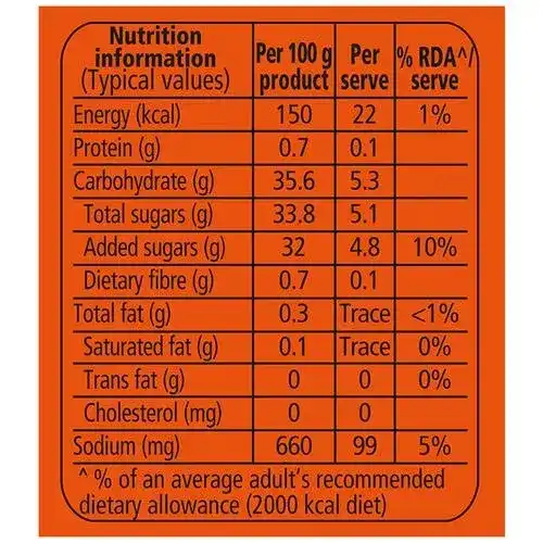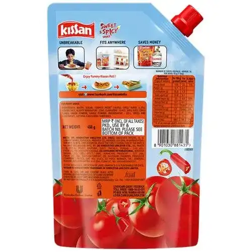 Kissan Sweet & Spicy is made with the best sun-ripened tomatoes and blended with tabasco sauce. It adds a tangy appetizing taste to your everyday snacks. It is made with natural good quality spice, onion, garlic and the goodness of 100% natural tomatoes. Make your meal and snacks tasty and healthy. It has a deliciously thick and rich consistency. It does not contain any artificial colour, preservatives or starch.