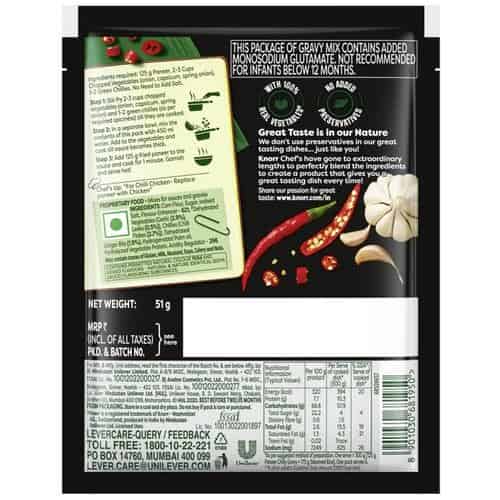 Just like you, we love everything about food, because no delicious meal is cooked without love. Love for carefully selected ingredients, flavours, love of serving people who matter the most to you. With Knorr as your cooking partner, you can serve your loved ones nutritious and flavourful meals at home. Made with top quality ingredients such as soya, green chillies and garlic, Knorr Chinese Chilli Gravy Mix, packs a real spicy punch. Knorr has four interesting Chinese Ready To Cook variants - Chinese Chilli, Manchurian, Schezuan gravy mixes and Fried Rice/Noodles instant mix. Great taste is in our nature! Now make Restaurant like Chinese food at home with Knorr Chinese Easy to Cook in just 3 steps.