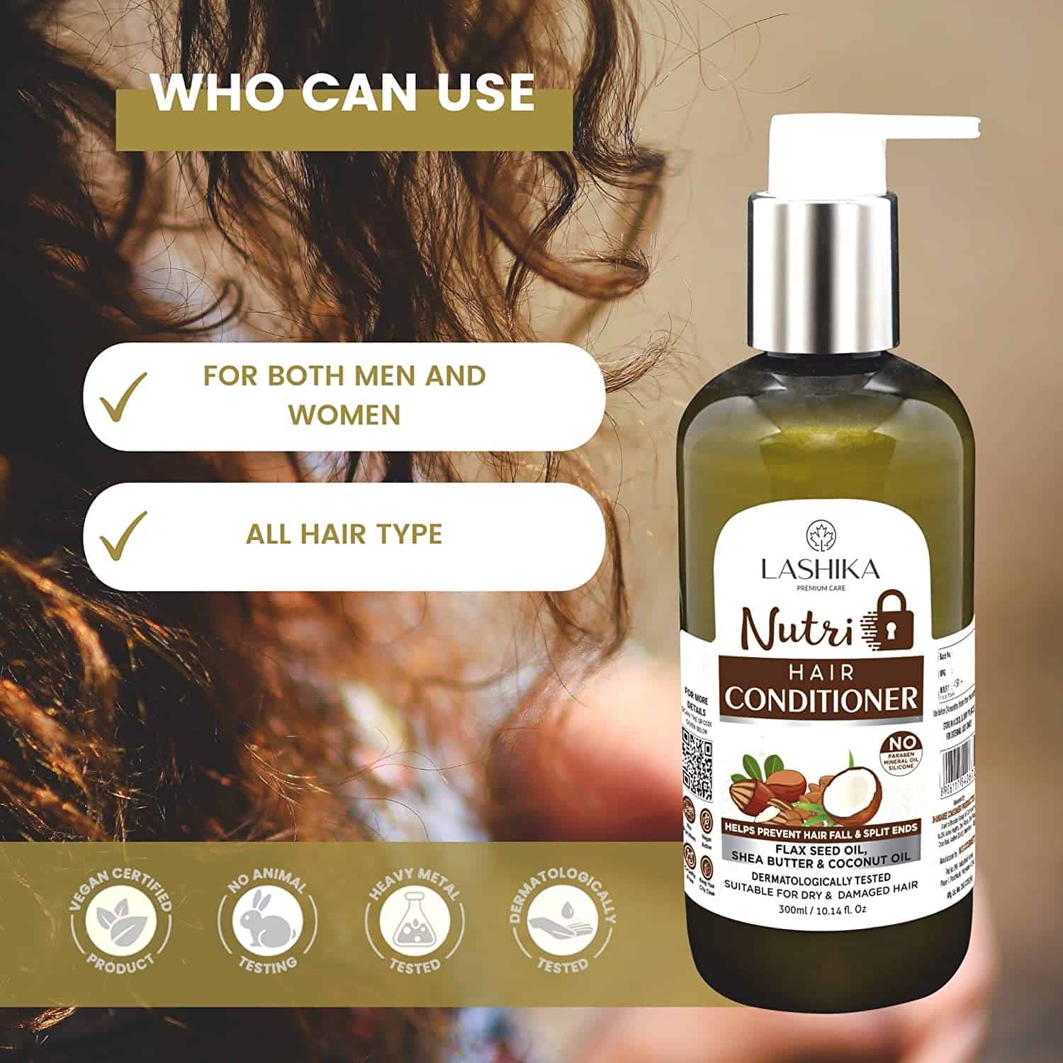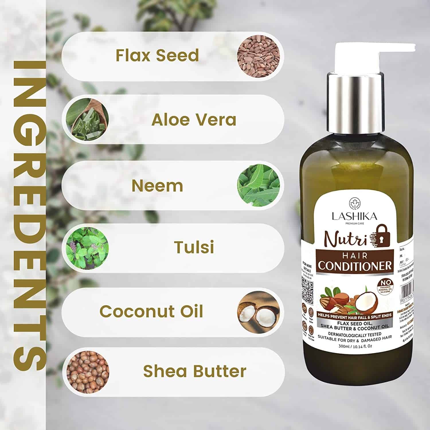 After washing your hair with Lashika Nutri+ Shampoo, application of Nutri Lock Conditioner with benefits of Flaxseed, Aloe Vera, Neem, Tulsi, Shea Butter & Coconut Oil keeps hair frizz free, silky smooth and retain it’s vitality