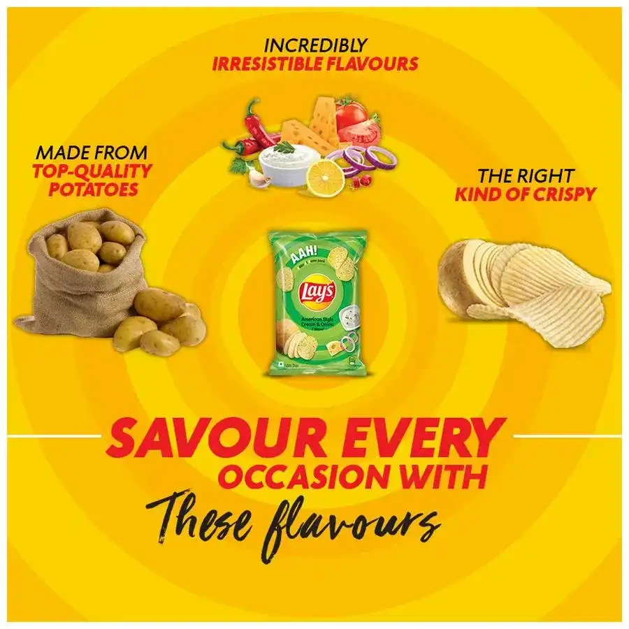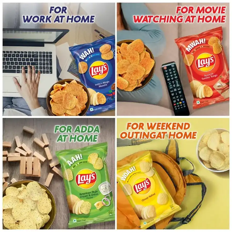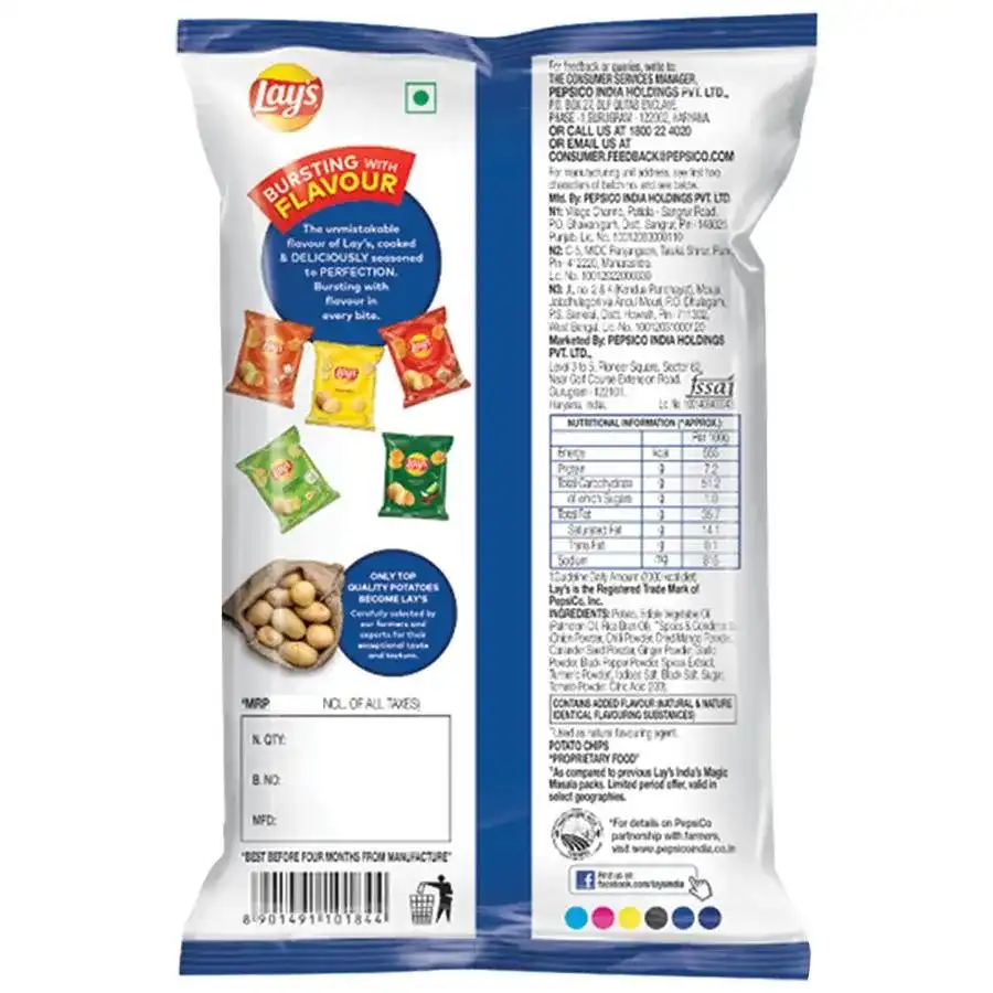 Taste the unbeatable blend of delectable Indian spices with best quality potatoes. From the everyday snack to the impromptu get-togethers, LAYS chips are the perfect addition to any occasion. Whether its party time or family time, everyone loves gathering around the chip bowl.