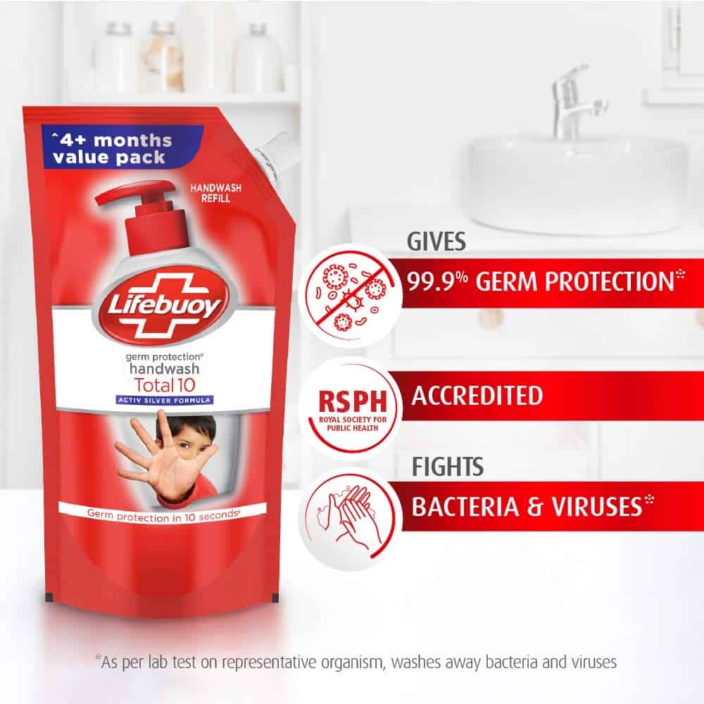 • Lifebuoy Total 10 Handwash is an effective way to fight infection causing bacteria and viruses