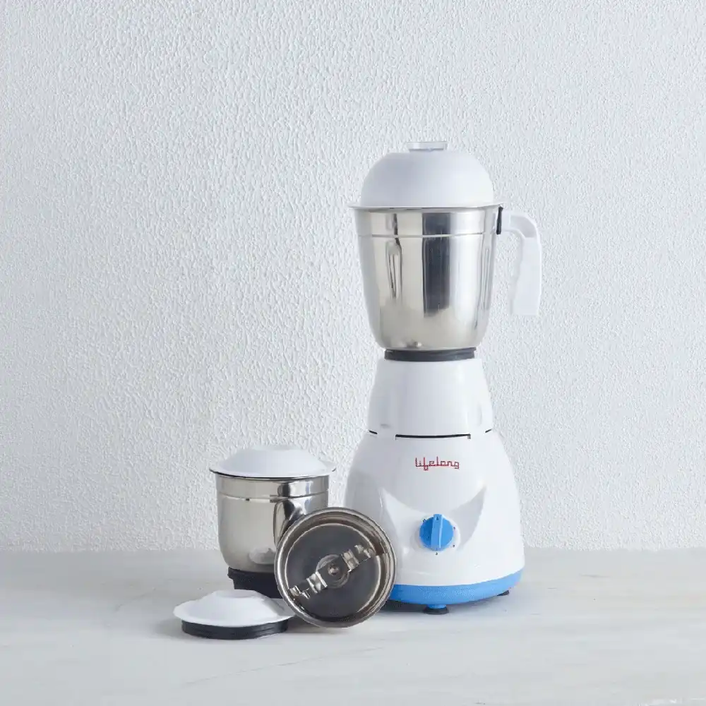 The mixer has three blades at the bottom that grinds all your ingredients to a smooth paste or powder ; Revolutions: 18000 RPM ; Material: Stainless Steel