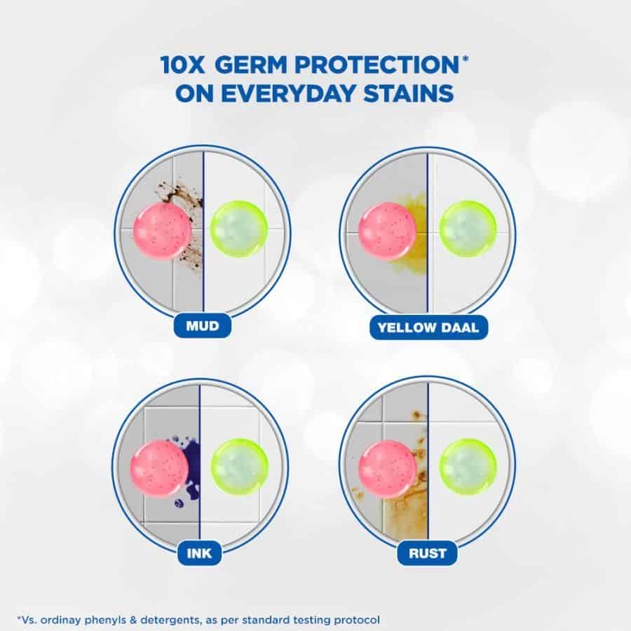 • Removes 100 types of Stains & 100 Germ strains