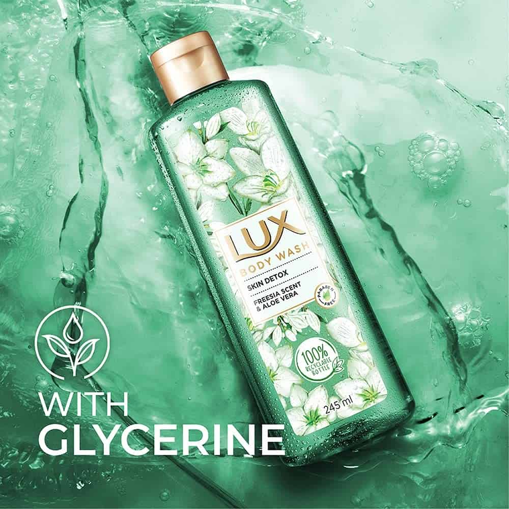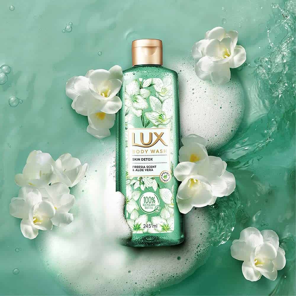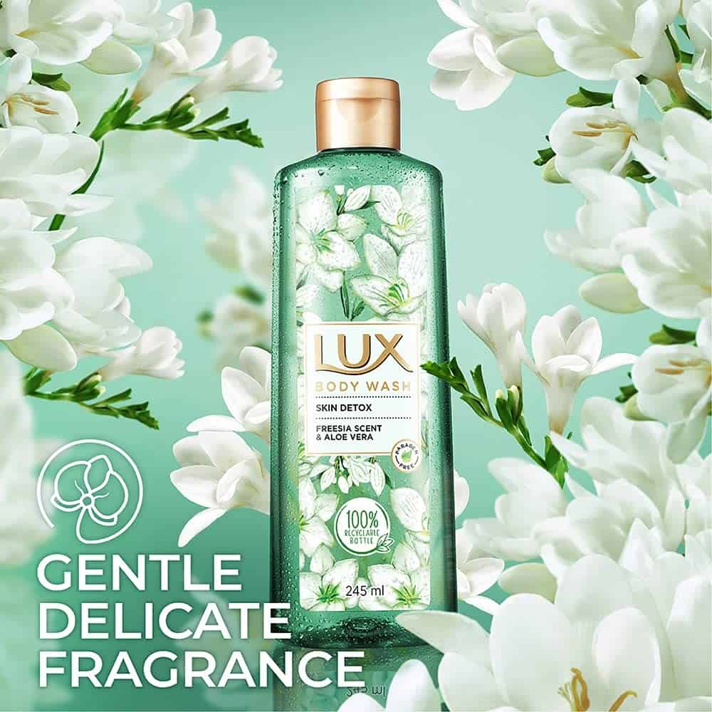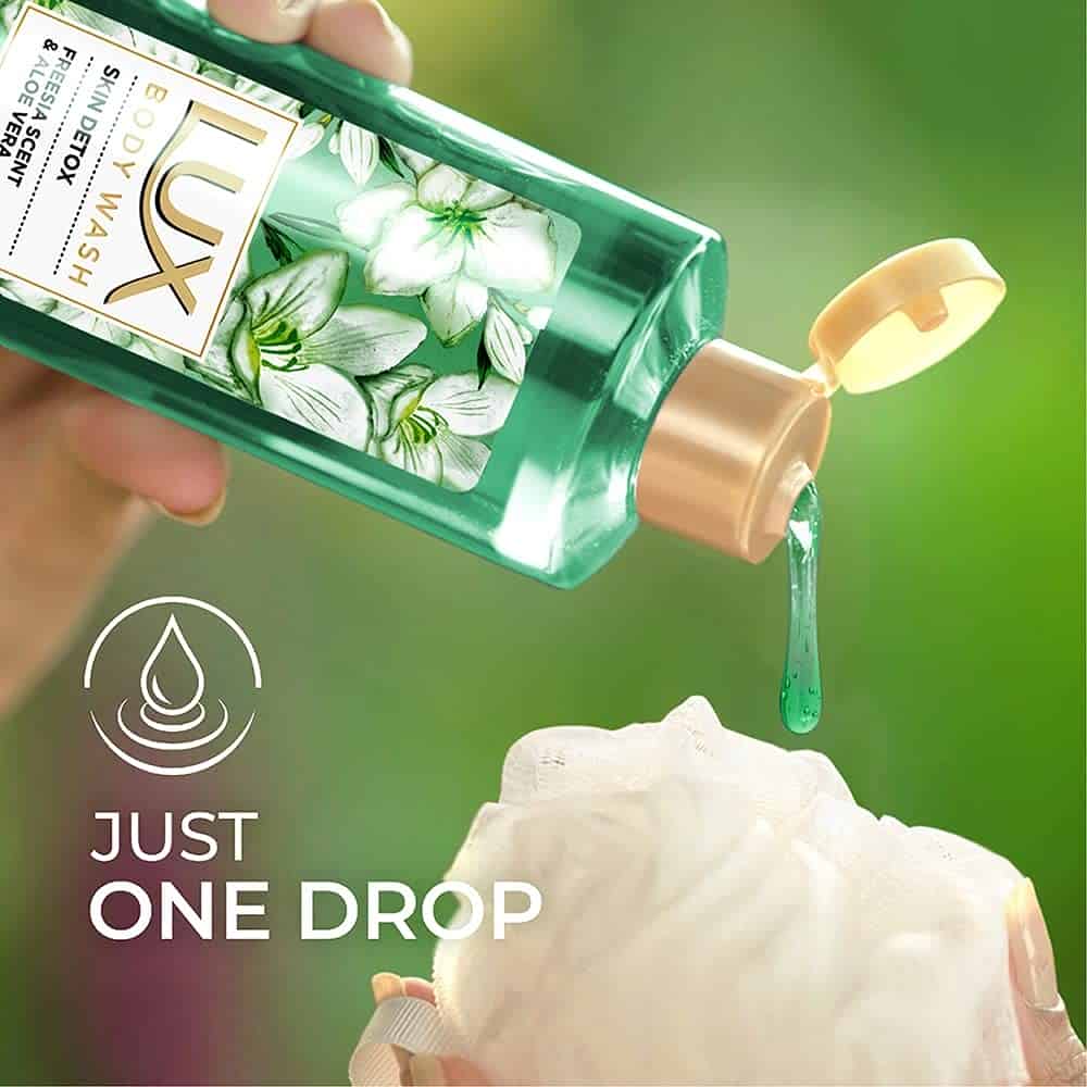 Want extra from your soap? Switch to Lux Skin Detox Body Wash for 3 extra benefits. Indulge in extra foam, extra softness in an extra-gentle formula. Enjoy an energizing bath with the sparkling scent of Freesia, infused with refreshing Aloe Vera. Skin feels gently cleansed, soft and glowing with every bath. The scent of Freesia will turn your shower into a moment of pure pleasure. Crafted by the world’s best perfumers, top notes of Sicilian Mandarin, Cologne, Tea and Mint refresh your senses before evolving into a delicate heart of White Flower Bouquet, Freesia,
