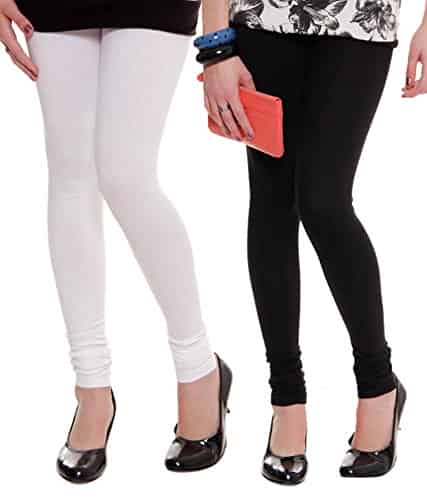 Lux lyra Women's Cotton Leggings (W~10/b~11, Black/White, Free Size) - Pack Of 2