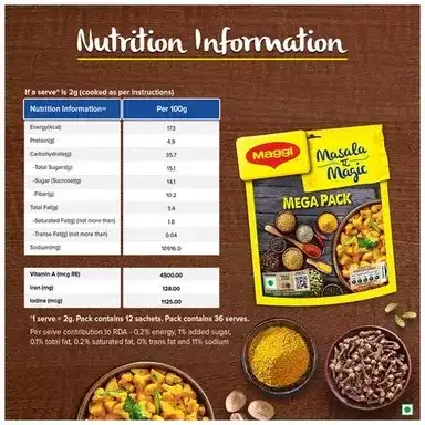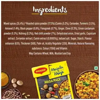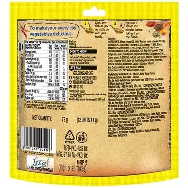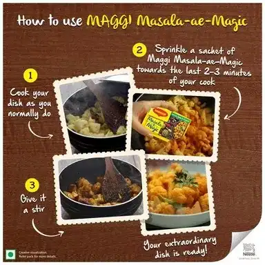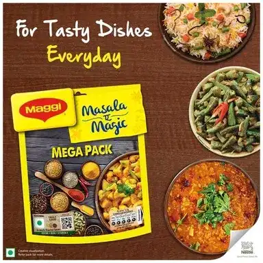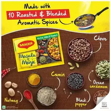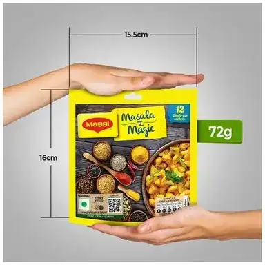 MAGGI Masala-ae-Magic is the magic, secret ingredient for those who cook daily as it enhances the taste of everyday vegetables and makes them extraordinarily tasty. This perfect blend of 10 choicest, aromatic and roasted spices is a great cooking aid to mothers everywhere because it adds that flavorful taste and aroma to your everyday dishes, which is loved by kids. MAGGI Masala-ae-Magic Share Bag contains 12 single-serve sachets that can be used for a variety of everyday dishes that range from vegetables like Aloo Gobhi, Bhindi, Dal, Paneer etc. to pasta, biryani and many more.