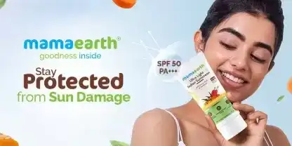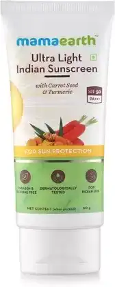 Mamaearth's Ultra- Light Indian Sunscreen with SPF 50 is specially curated for Indian skin tones. It provides upto 6 hours of protection against harsh UVA & UVB rays. It doesn't dry out your skin and keeps it moisturized, without making it patchy. Natural ingredients such as turmeric treats tan and keeps your skin glowing whereas orange oil increases skin's ability to absorb the cream, making it non oily. Mamaearth Ultra- Light Indian Sunscreen is free from all harmful toxins such as paraben, mineral oil, silicone etc.