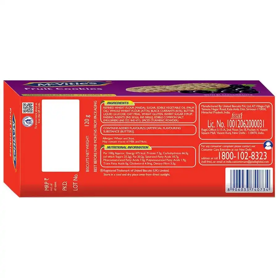 Treat yourself to the natural goodness of blackcurrants with the all-new McVities Fruit Cookies. They are the perfect breakfast cookies as they are a well-balanced mix of taste and nutrition. They also make a great on-the-go snack, which can be relished whenever the hunger pangs kick in.