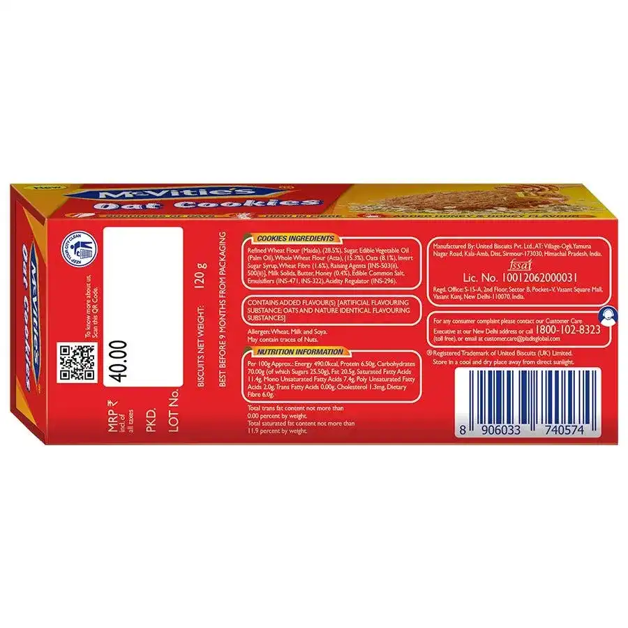 McVities Oatmeal Cookies - HobNobs is baked with rolled oats, whole wheat flour, and other healthy ingredients. It is a delicious crunchy biscuit. Have a crispy bite of the delightful oat and wheat HobNob biscuits that will soon melt softly in your mouth and leave you deficient more. Made with the natural goodness of oats and blended with natural honey.
