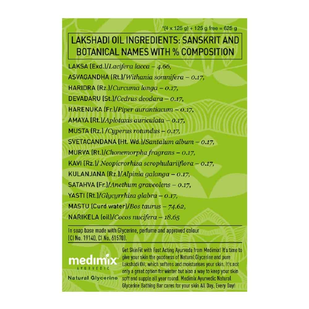Now, turn an ordinary bath into an Ayurvedic beauty ritual. Natural Glycerine locks moisture in the skin, making it soft, supple taut and balanced. Contains Lakshadi Oil, a time-tested Ayurvedic oil preparation with nourishing, therapeutic and curative properties