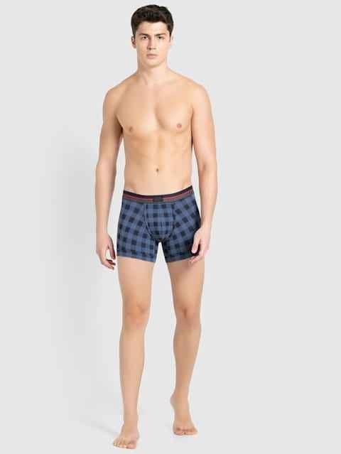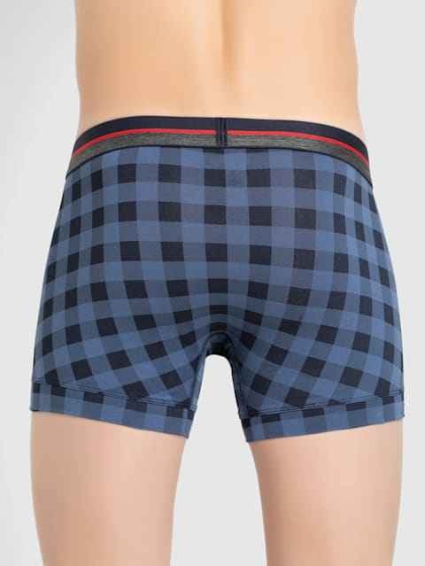 Men's Super Combed Cotton Elastane Stretch Checkered Trunk with Ultrasoft Waistband - Federal Blue checked#zn05