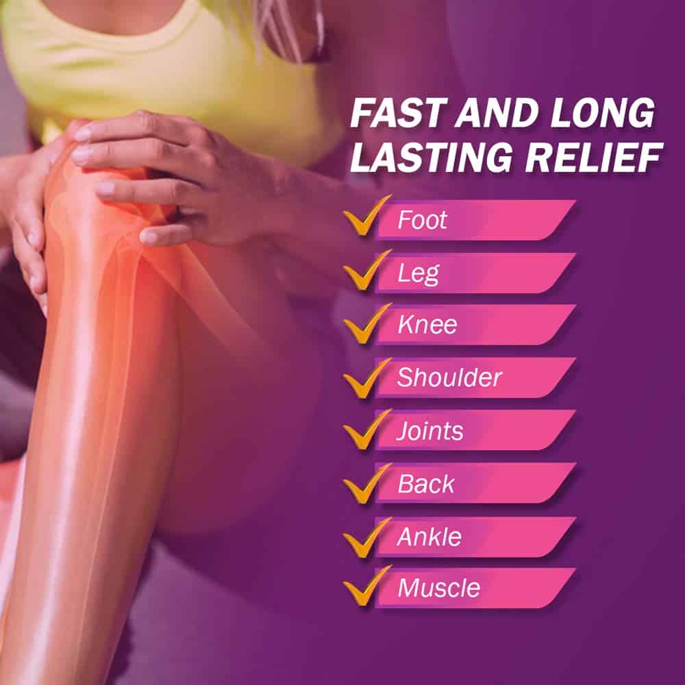 • The special ingredients like Turpentine oil, Nilgiri oil, wintergreen oil, mint extract and cinnamon oil swiftly penetrate the targeted area of pain