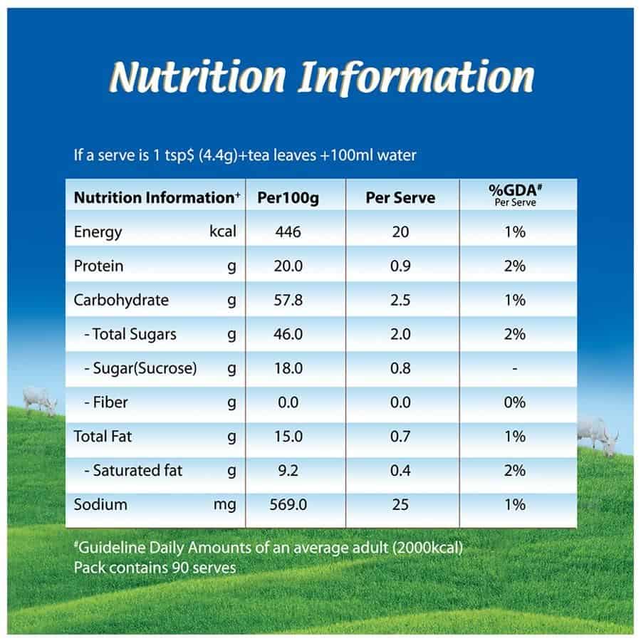 Suggestion: 1 tbsp + tea leaves + 100ml water Storage: After opening, transfer the contents into an airtight container to avoid lumping. Store in a cool, dry and hygienic place. Safety Warning: This product is not to be used as a mother’s milk substitute.