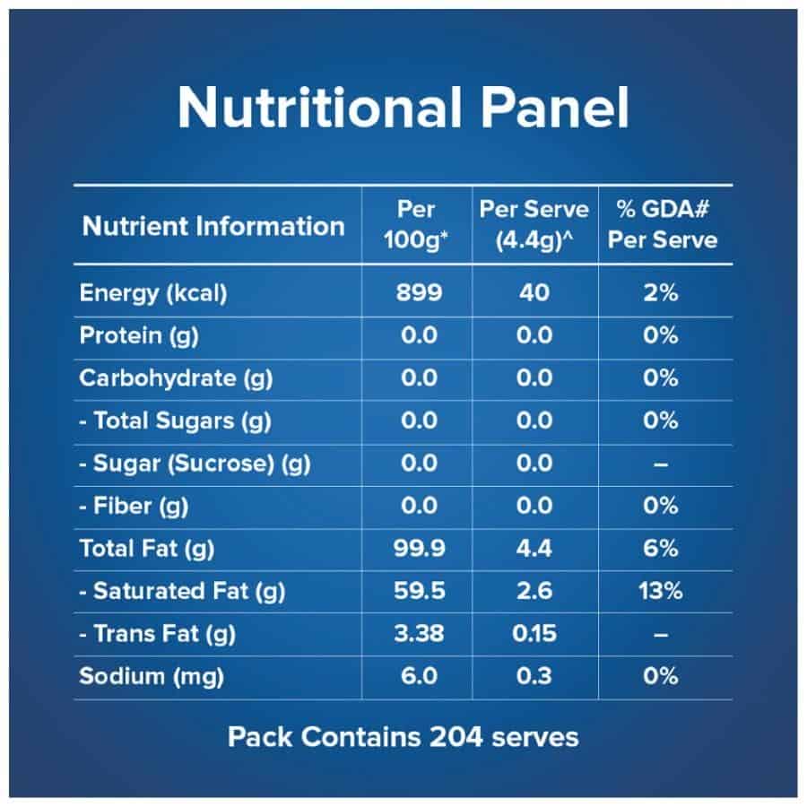 Serving: This 1 ltr Ghee pack contains about 204 serves (1 serve ~ 4.4g)