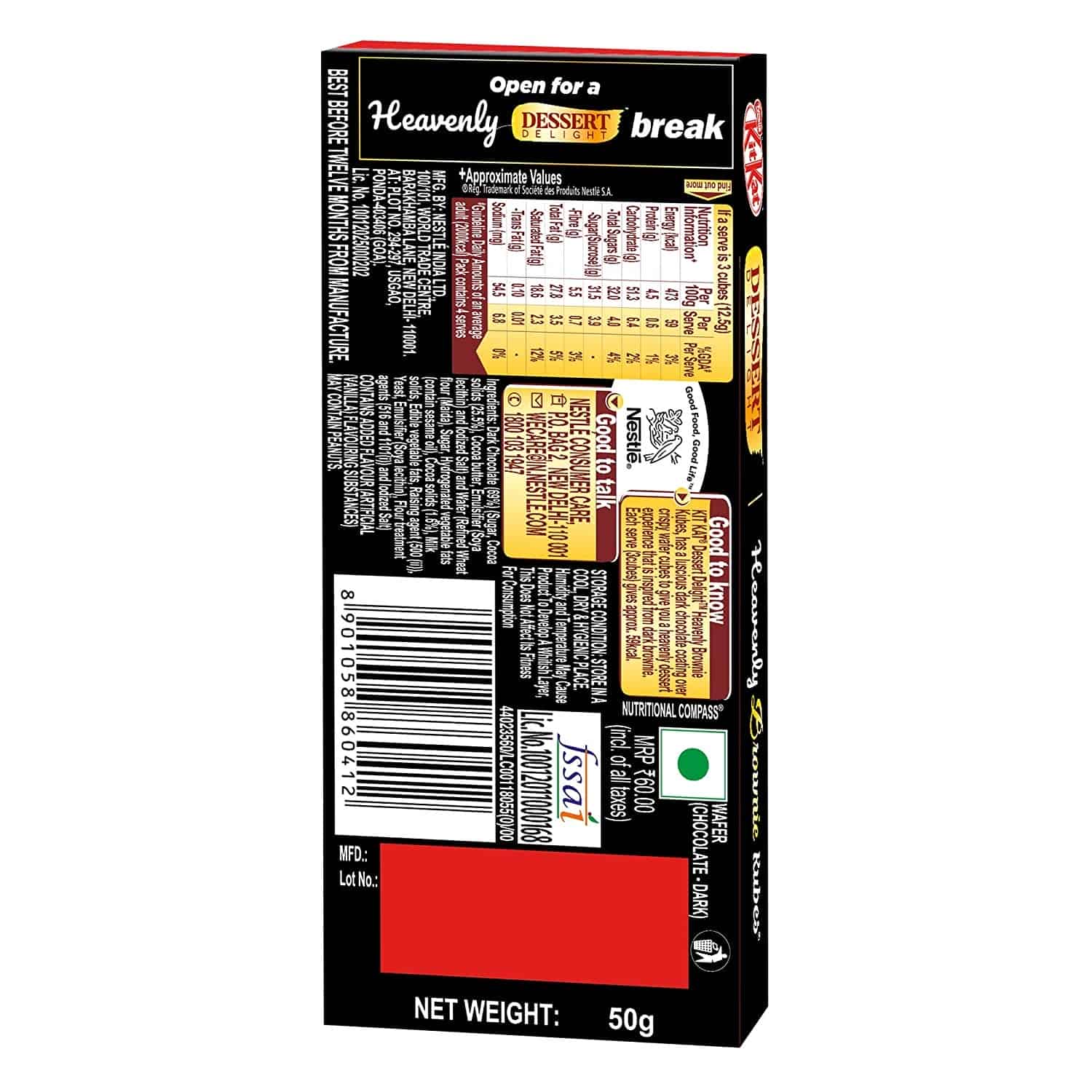 Nestle KitKat Dessert Delight Heavenly Brownie Kubes Chocolate, 50g