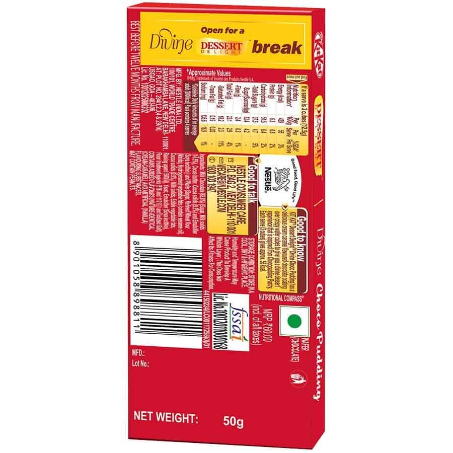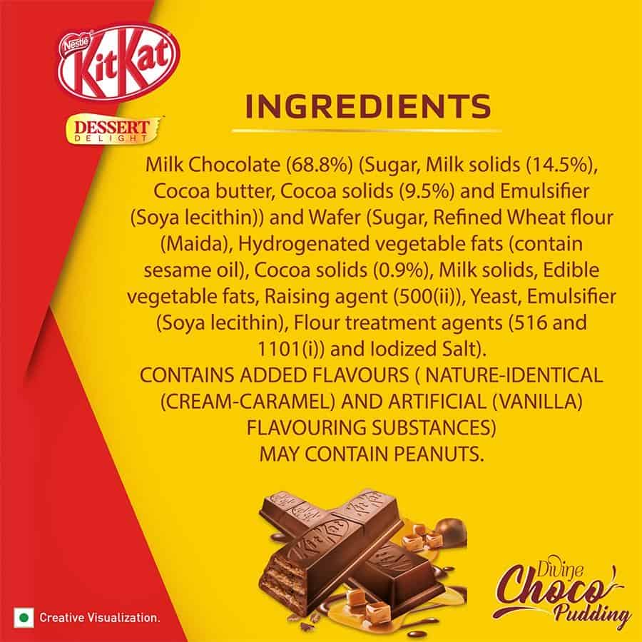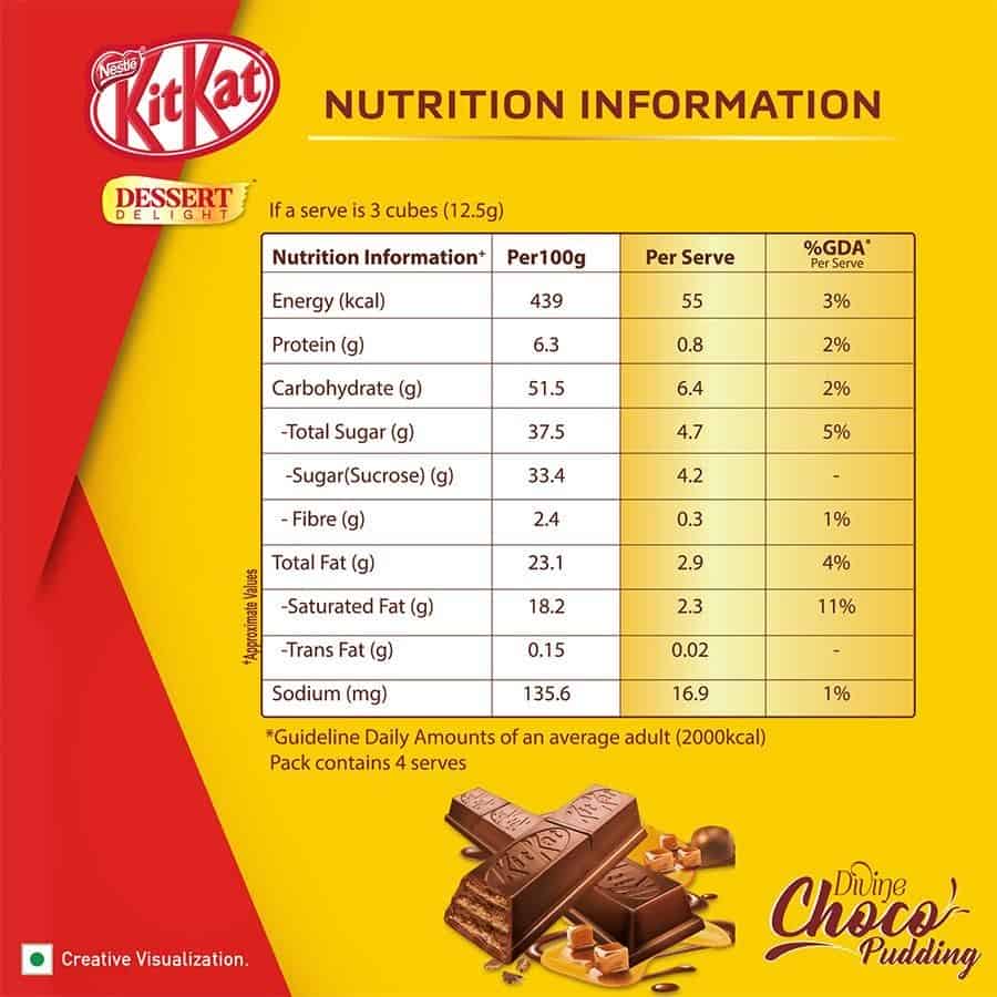 With rich cream- caramel milk chocolate coating over cocoa wafer cubes Nestlé Kitkat Dessert Delight Choco Pudding gives you a delectable dessert experience anytime you want. This divine choco pudding is the ideal delightful treat when you’re in mood for something fun and unique. Enjoying dessert delight choco pudding, wafer coated with milk chocolate as part of a balanced diet is one of life’s little pleasures and this Kitkat makes a perfect delicious treat with only approx. 55 calories per serving (3 cubes). So, break your way to delicious Kitkat wafer recipes or simply open up for delight in every bite! Have A Break, Have A Kitkat.