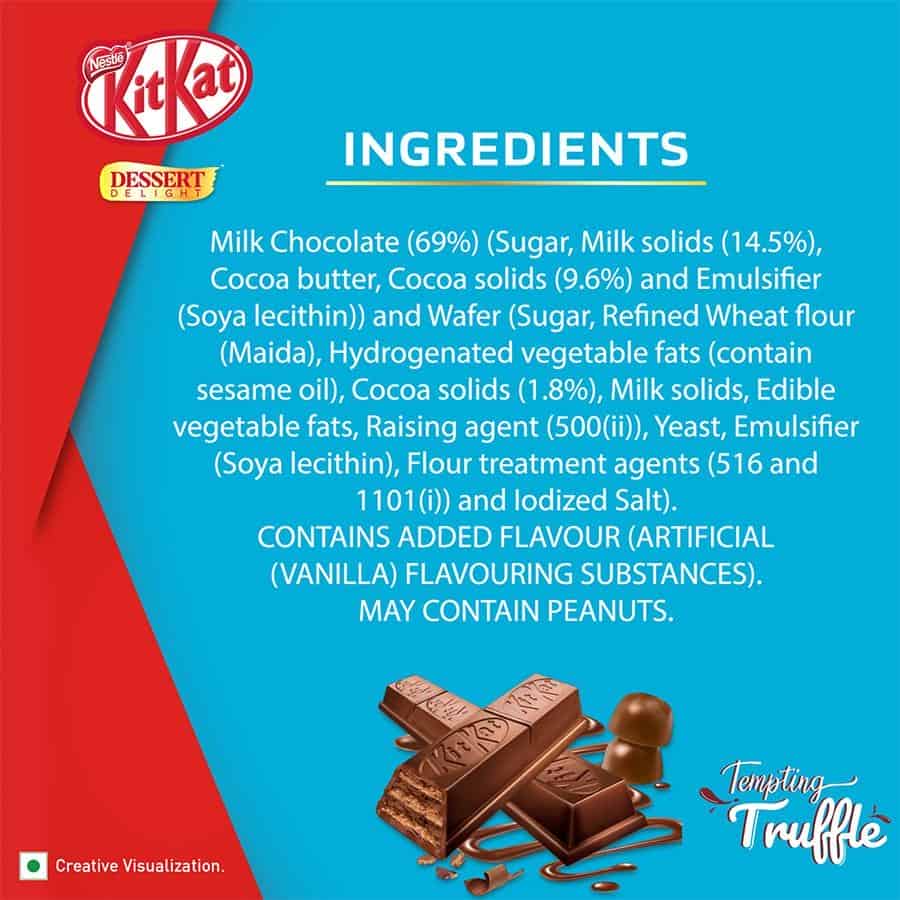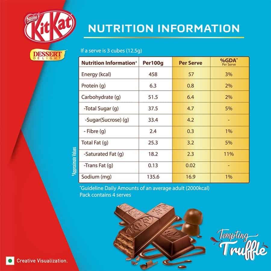 With milk chocolate coating over cocoa wafer cubes, Nestlé KitKat Dessert Delight Truffle gives you a delectable dessert experience like truffle pastry anytime you want. This tempting truffle is the ideal delightful treat when you’re in the mood for something fun and unique. Enjoying dessert delight truffle, wafer coated with milk chocolate as part of a balanced diet is one of life’s little pleasures and this Kitkat makes a perfect delicious treat with only approx. 57 calories per serving (3 cubes). So, break your way to delicious KitKat wafer recipes or simply open up for delight in every bite! Have A Break, Have A Kitkat.