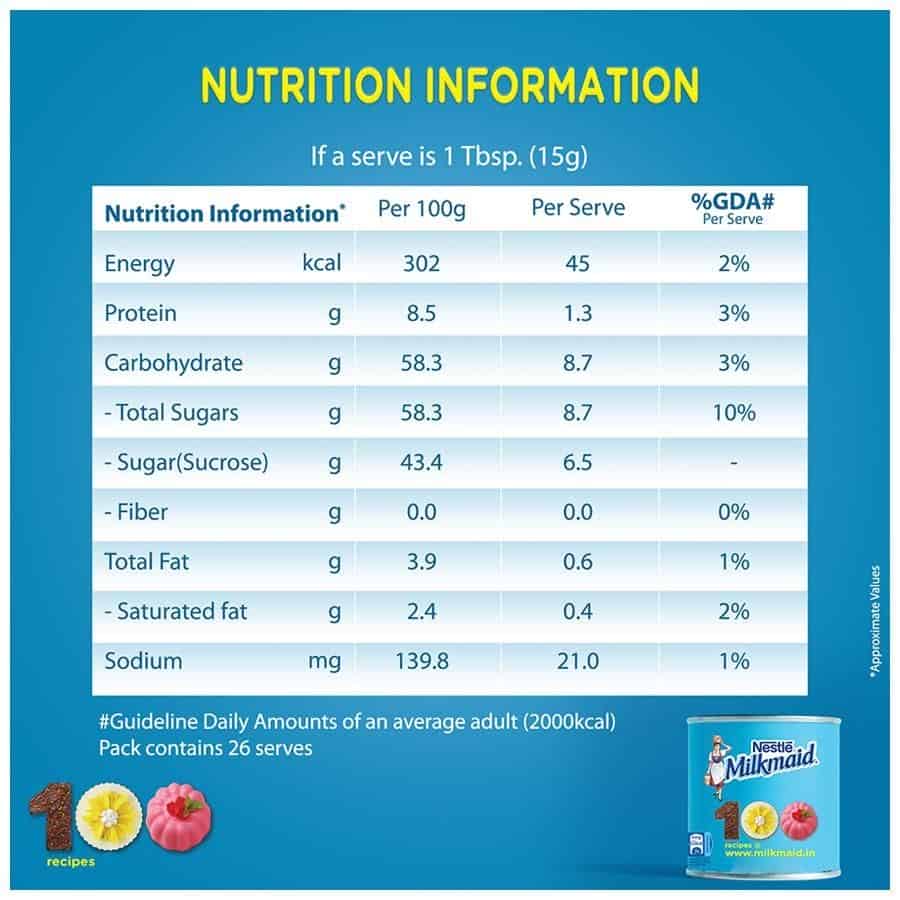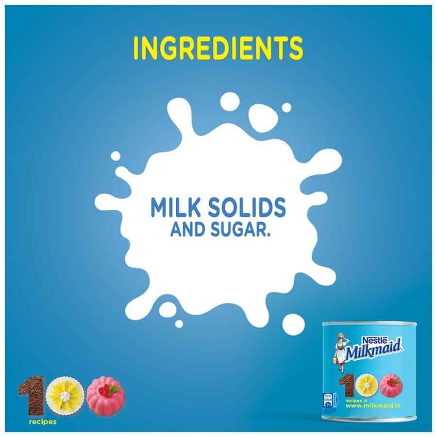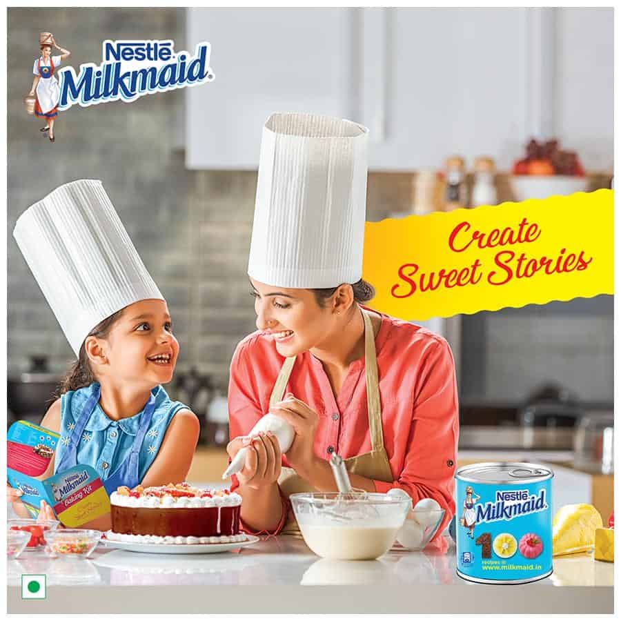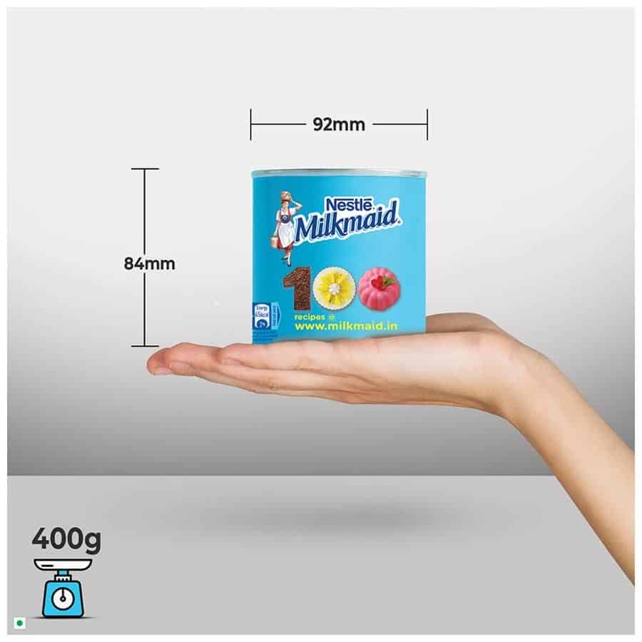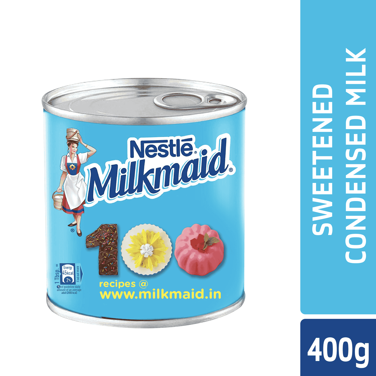 MILKMAID is rich and creamy, sweetened condensed milk - the dessert partner that helps you make a range of mouth-watering sweets at home - be it payasam, ice creams, cakes and much more. Made with high-quality milk, your favourite MILKMAID has been delighting generations for over 100 years! Make and enjoy your favourite desserts after lunch, dinner or as a snack. Milkmaid comes in the size of 400g Tin, each serving of loved dessert containing approx. 45 Kcal per tablespoon. Are you worried you may not know how to use it? We have got you covered with www.milkmaid.in. Milkmaid’s very own website with more than 100 irresistible recipes, to help you create hundreds of sweet stories!