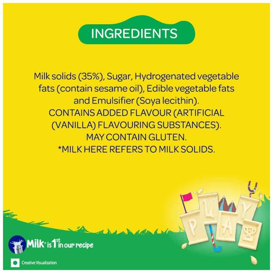 Why Milkybar? Nestle MILKYBAR creamy white treat is the ideal snack for those who love milk, just like us. This one comes with a delicious taste for more fun, making it creamier and yummier. It has yummy milky goodness with Milk (Milk solids) being 1st in our recipe. How is it unique? The great creamy- tasting smooth white treat with its Milk 1st recipe and the Play Eat & Learn proposition is the perfect ally for moms to help their kids have a wholesome childhood.