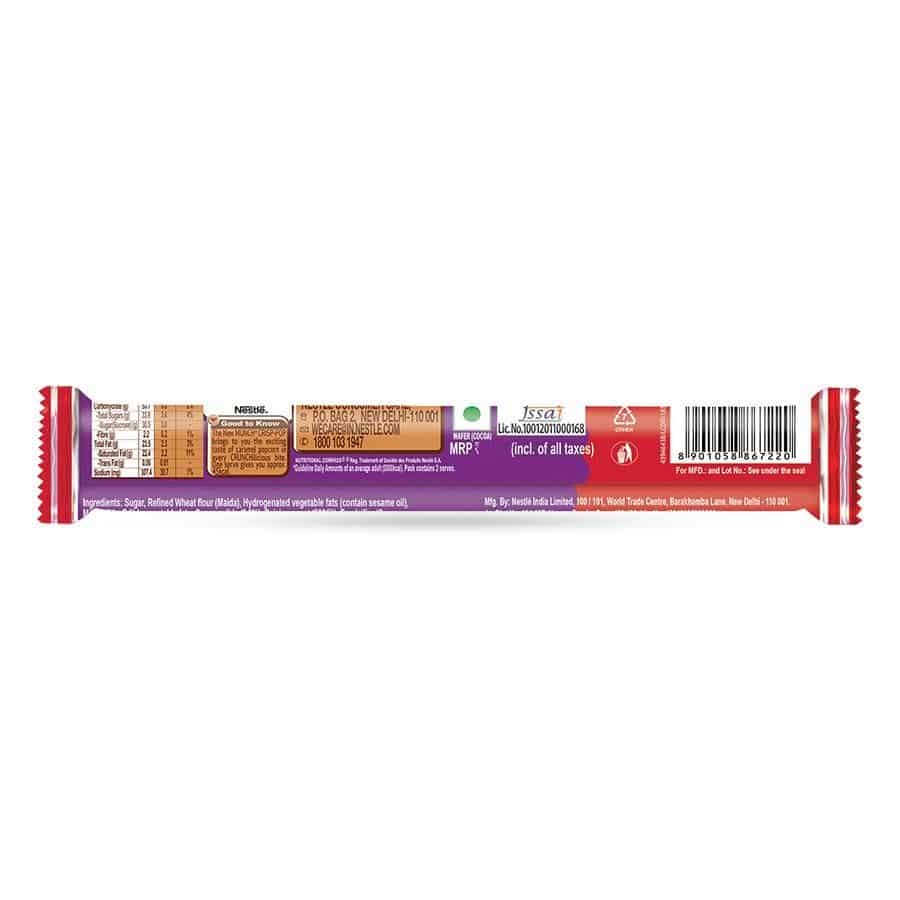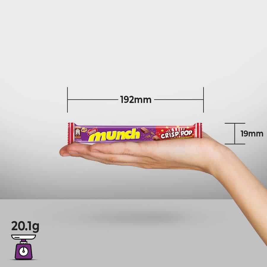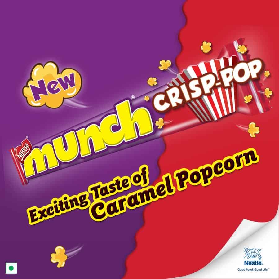 Nestle MUNCH CRISP POP - a first of kind variant brings to you a unique taste offering delivered through the iconic CRUNCH of MUNCH. With the subtle taste of caramel flavoured popcorn, packed in a coated wafer format Munch Crisp-Pop, discover something new with every bite. You have loved the same delicious MUNCH taste for years but now experience it with the subtlety of Caramel flavoured popcorn. Savouring chocolate as part of a balanced diet is one of life’s little pleasures and this MUNCH Crisp- Pop makes a perfect crunchy chocolaty treat with each serve of 10g (1/2 bar) containing approx. 45 kcal. So, crunch your way to mouth-watering MUNCH CRISP-POP with friends or you can also enjoy it by yourself.