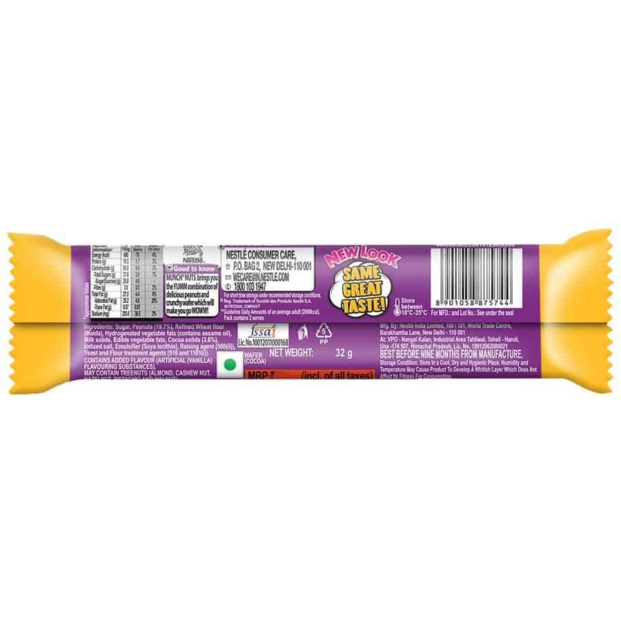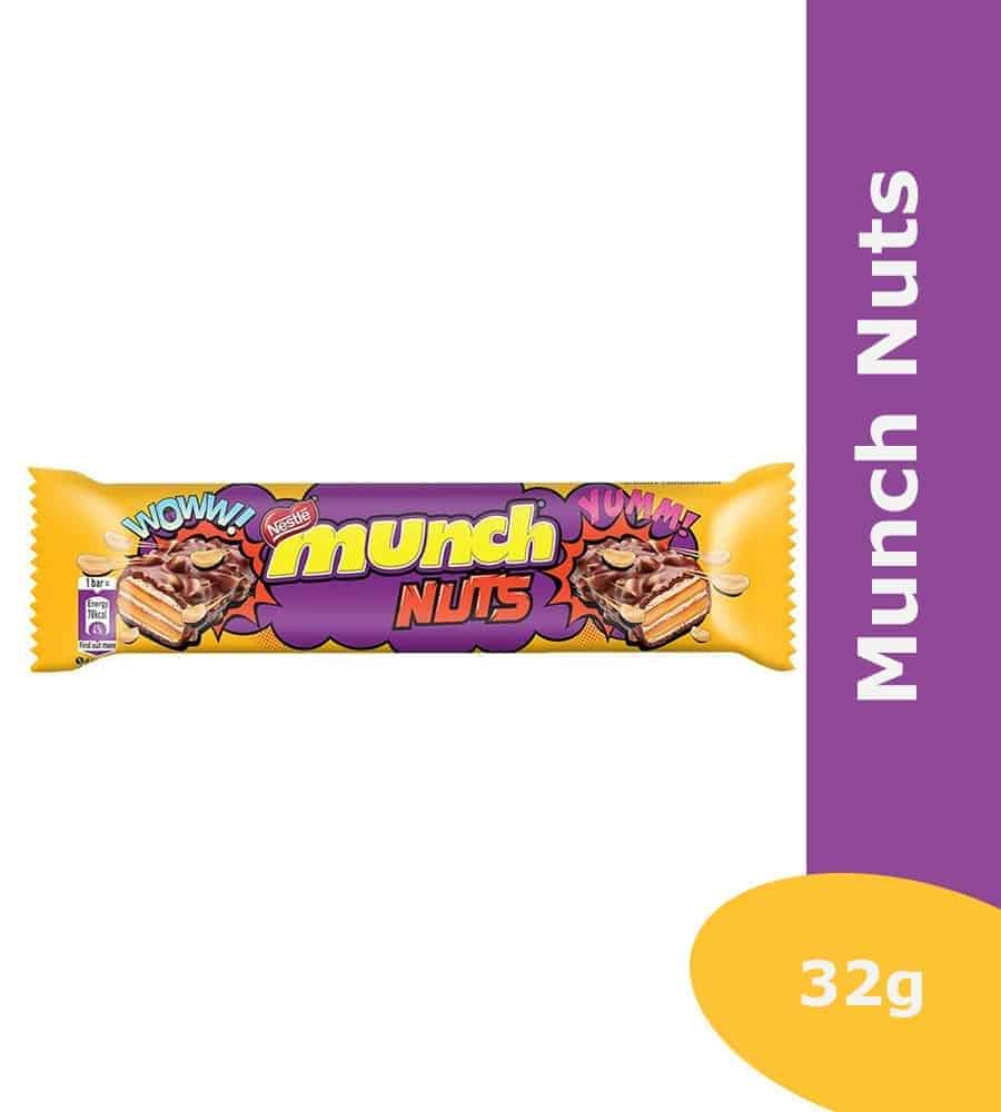 Nestle Munch Nuts brings to you a unique combination of delicious peanuts crème and wafer chocolate resulting in an explosive multi- sensorial crunch. With the coat of roasted peanut bits, Munch Nuts lets you discover something new with every bite. The chocolaty crunch with the smoothness of peanut butter-cream gives it a sweet and nutty taste, so you can savour every bite. It’s the same delicious taste that you have loved for years, but now with the extra power of nuts.