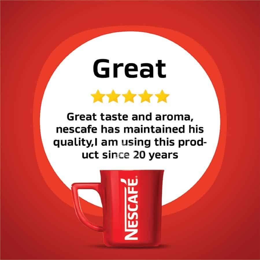To take your coffee experiences to the next level, Nescafe, the world's favourite instant coffee brand, brings forth a rich and aromatic coffee in the form of Nescafe Classic. The unmistakable flavour of Nescafe Classic is what makes this signature coffee so loved all over the world. Start your day right with the first sip of this classic 100% pure coffee and let the intense taste and wonderfully refreshing aroma of Nescafe instant coffee awaken your senses to new opportunities. With over 75 years of experience and working with coffee farmers, to help them grow more sustainable coffee through improved crop techniques, we deliver the best coffee produced by the best selecting, roasting and blending methods.