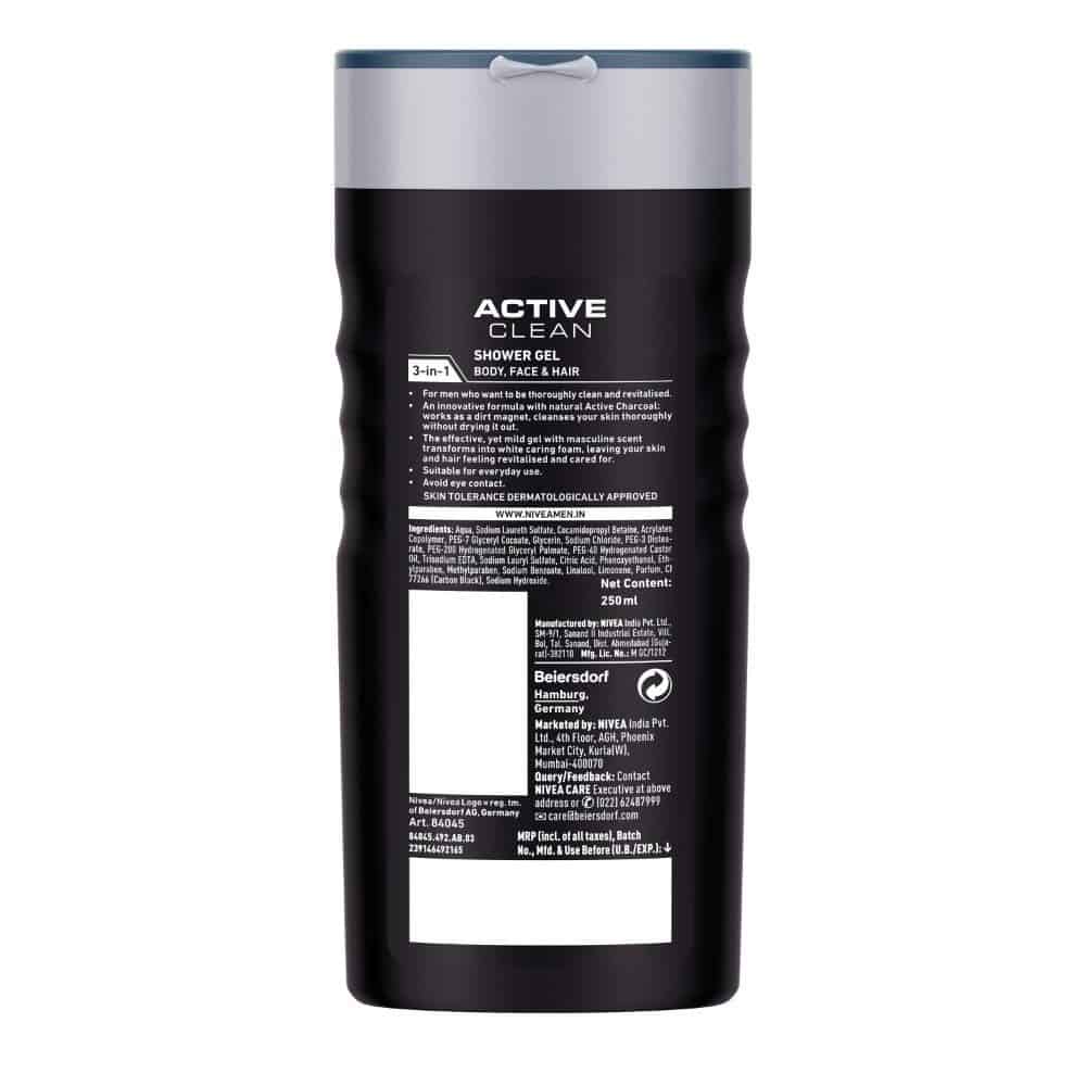 With active charcoal for deep cleansing. 3-in-1 for face, body and hair. Dirt, grime and pollution getting you down? Try the new Nivea men active clean shower gel with active charcoal.