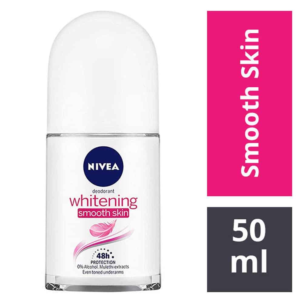 Care for your underarms with NIVEA Whitening Smooth Skin Roll On. It contains mulethi extracts which give you even toned underarms along with odour control. It’s 0% alcohol formula combines NIVEA’s gentle care and reliable protection. The Nivea Whitening Smooth Skin Roll On is dermatologically tested which makes it reliable for taking care of your underarm skin.