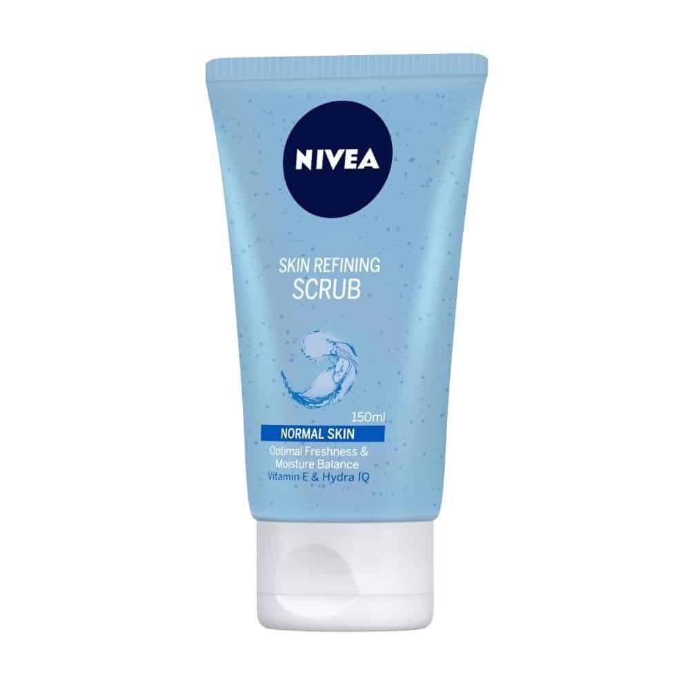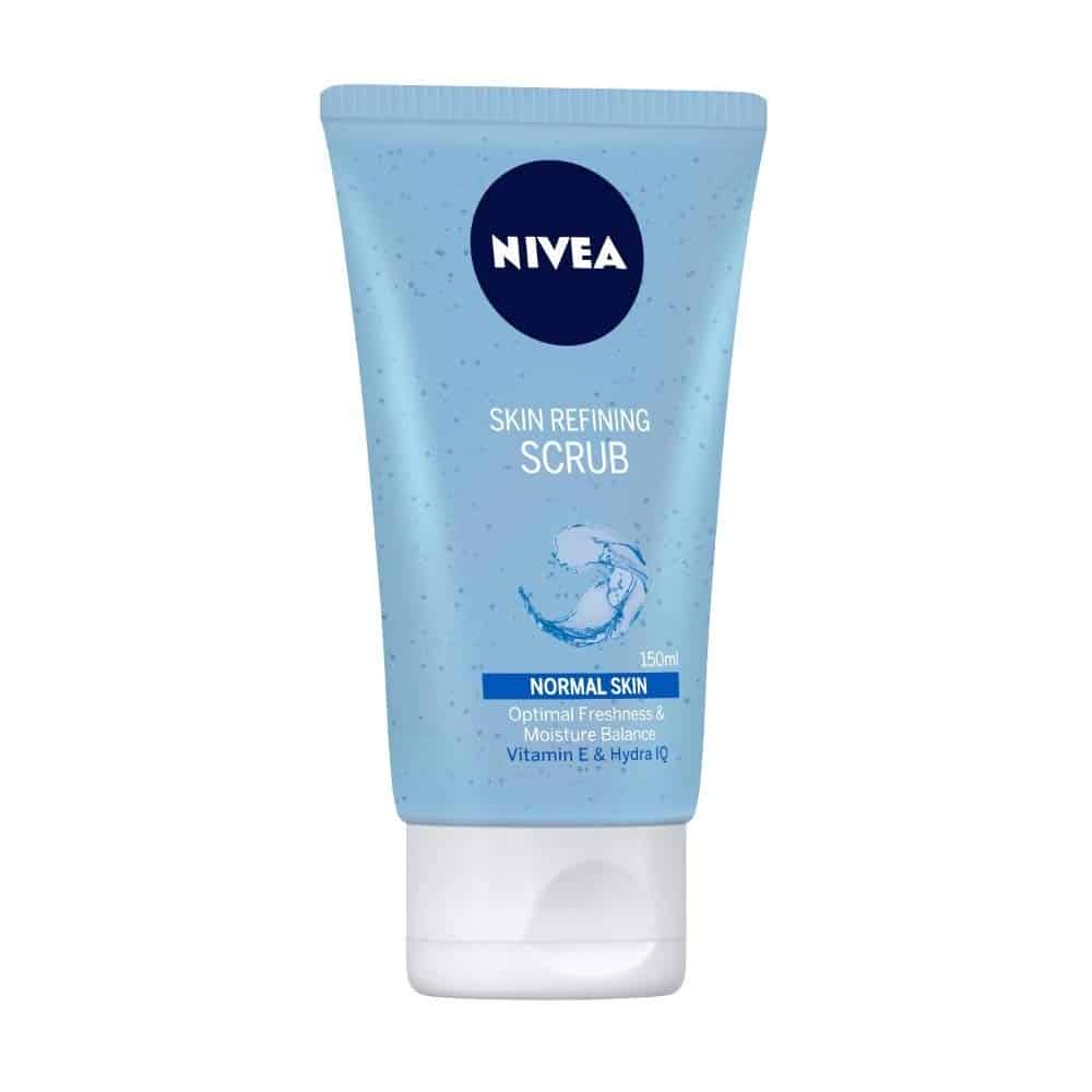Nivea aqua effect skin refining scrub for normal skin is enriched with vitamin E and hydra IQ. Its effective formula exfoliates thoroughly while removing dead skin cells, refines the skins surface for an even complexion while respecting the skin's own moisture balance. It is mild on the skin with vitamin E and hydra IQ.