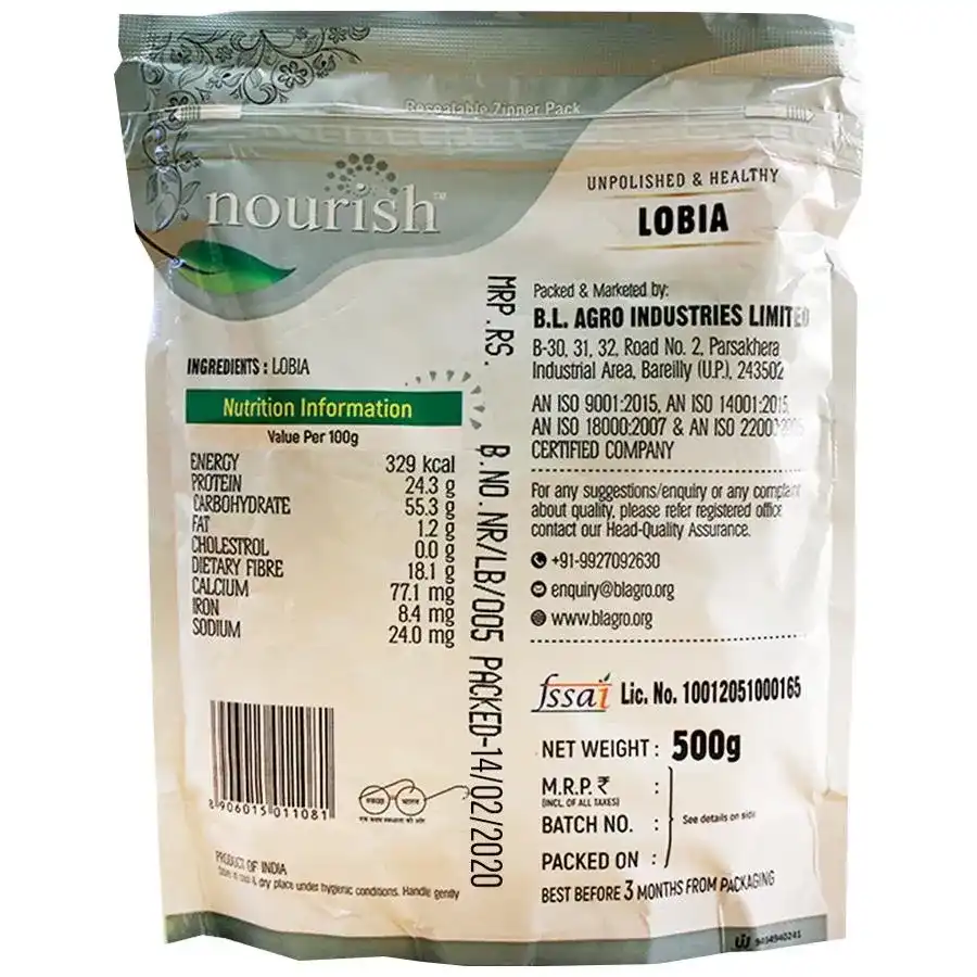 Nourish Lobia or Cowpeas are a type of legumes used for making Dal, salads and even soups. They are one of the widely cultivated annual crops in India. Cowpea in Hindi is called “Lobia”. It is also called “Bobbarlu” in Telugu, “Karamani” in Tamil, “Chavli” in Marathi and “Alasande” in Kannada. Lobia seeds are amazing sources of protein, vitamins and minerals, making them one of the most economical superfoods.