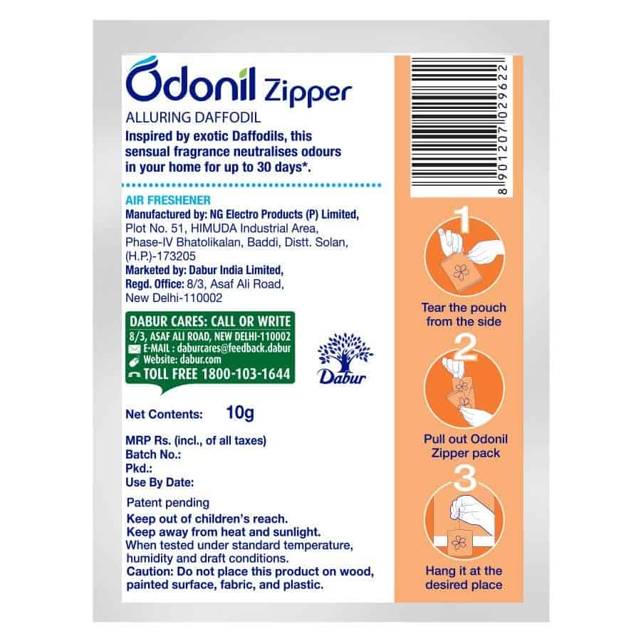 Bring the scent of spring into your home with the alluring daffodil fragrance of Odonil Zipper. The light and playful floral scent with a hint of fruits will give a tropical feel to your bathroom. Odonil Zipper has special powerful fragrance perfumes that promise to transform you. It is a multi-space air freshener that can be used in car, washroom, cupboards, wardrobe, kitchen and shoe rack. It is the most powerful air freshener that gives a blast of fragrance. It can last up to 30 days and is easy and convenient to use. Now Available in 6 different fragrances – Jasmine, Lavender, Citrus,Daffodil & Rose