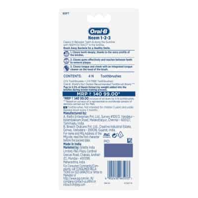 Oral- B 1.2.3 Toothbrush with Neem Extract, Soft (Buy 2 Get 1 Free)