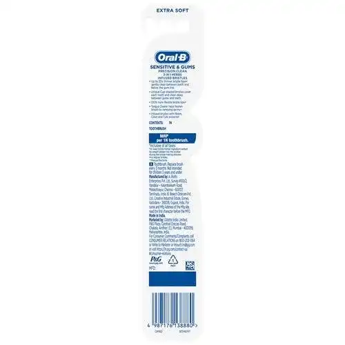 Oral-B is the World's No. 1 Toothbrush brand used and recommended by dentists worldwide, which brings to you and your family revolutionary brushing solutions with best in class technology to ensure you and your family get healthier and cleaner mouth. Oral B’s Sensitive & Gums range is developed for Sensitive Gums and Teeth. Precision Clean brush comes with upto 20x thinner bristle tips that gently clean between teeth and below the gum line.