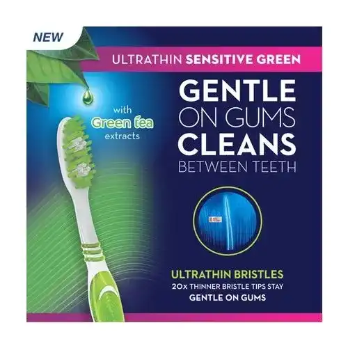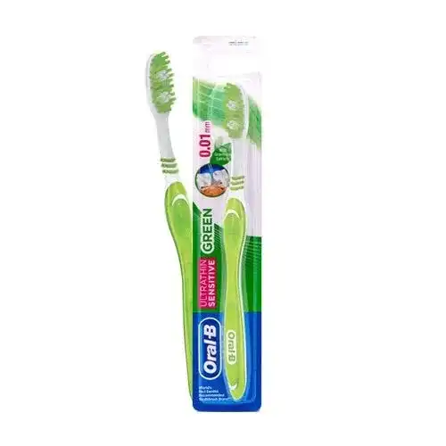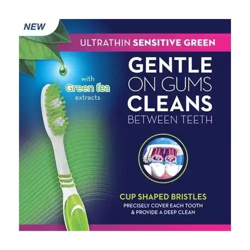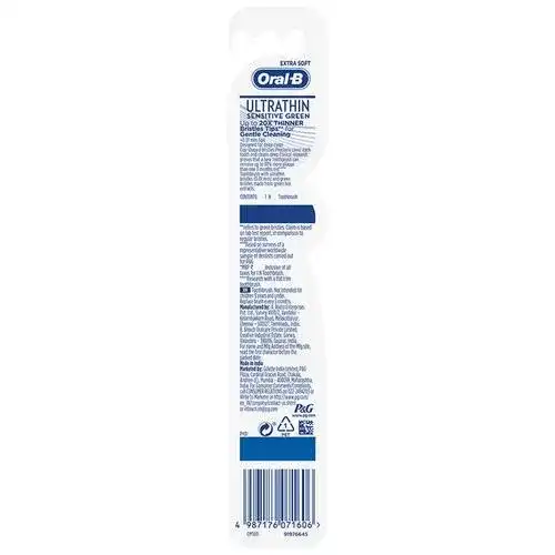 Oral-B is the Worlds No1 toothbrush brand used by Dentists worldwide, which brings to you and your family revolutionary brushing solutions with best in class technology to ensure you and your family get healthier and cleaner mouth. Oral-B Ultrathin Sensitive Green has green tea extracts. It has 20x thinner bristle tips that stay gentle on your gums and clean between teeth. The brush has a combination of Ultrathin and Regular bristle tips which give you superior cleaning experience.