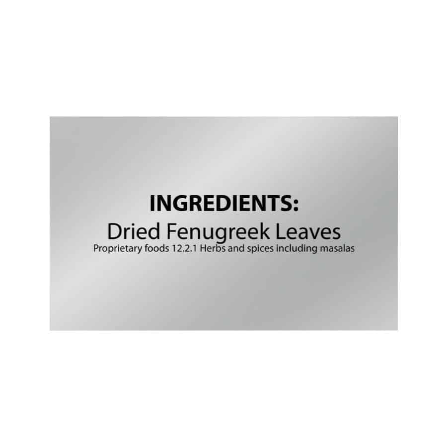 Kasoori Methi or dried Fenugreek leaves is an exotically fragrant taste enhancer. Orika's Kasoori Methi leaves are sourced from the Nagaur region of Rajasthan, famed for being the best in India. The most premium quality fenugreek leaves are dried under controlled conditions and can be added into a variety of dishes ranging from vegetables & pulses to Paranthas or chapattis for the delectable aroma and beautiful texture of pure Kasoori Methi.