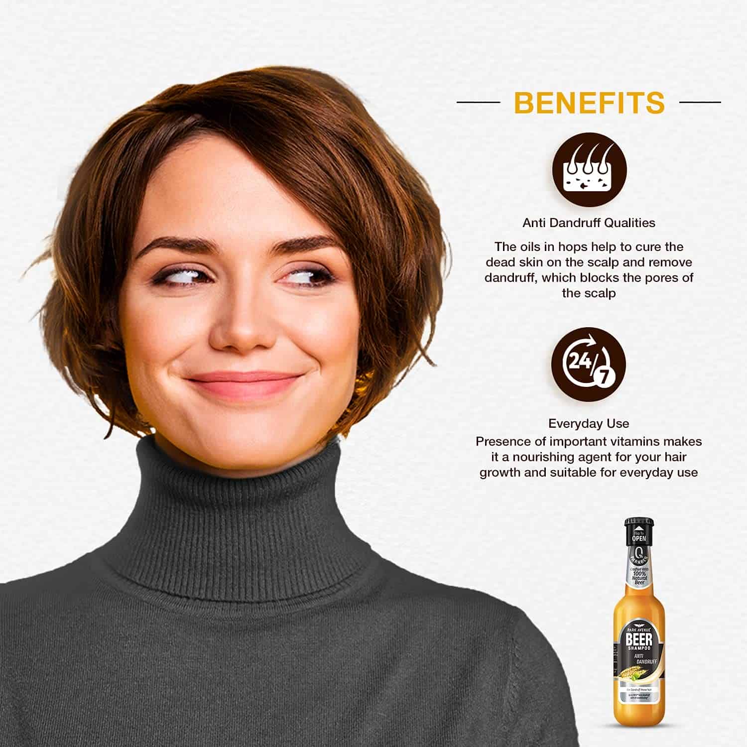 • Hops & yeast in beer helps to alleviate dandruff and reduces itchiness of scalp