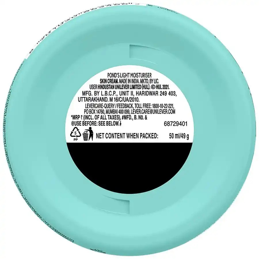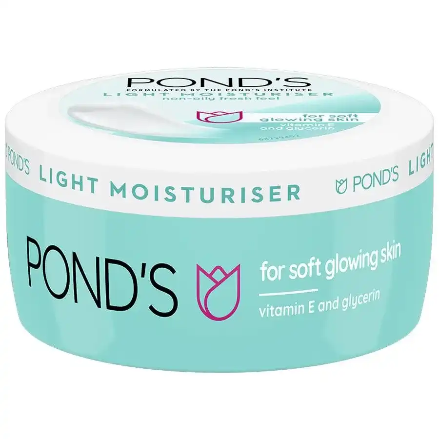 Pond's Light Moisturiser is a light sensorial cream from Pond's for soft, moisturised skin with a non-oily fresh glow. It is enriched with Vitamin E which moisturises your skin from deep within. It contains glutamic acid which is an amino acid that is produced naturally in the human body, this helps to restore the moisture balance to keep the skin soft and smooth. Its lightweight formula absorbs into the skin instantly and makes it ideal for all-year-round use. Loaded with vitamin B3 & Vitamin C, this formula improves the skin renewal process & restores the skin's barrier. It is clinically proven to give an even-toned, glowing skin that is non-oily.