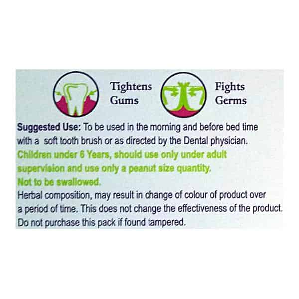 Patanjali dant kanti junior dental cream protects your children’s dental/oral health and adds a bright sparkle to their smile. The herbal ingredients cleanse teeth and fortify them against pyorrhea, gingivitis, bad odour and gum problems. Akarkara and babul are prime ingredients that keep gums secure. Neem, timbaru (strychnosnux vomica or diospyros), turmeric and cloves protect, disinfect and remove bacteria. Pudhina and pippali impart a refreshing feel to the gums. Peelu and maju phal further enhance the strength of the gums. Patanjali dant kanti junior dental cream provides multi-purpose solutions and protection for your children’s oral health needs. Use twice daily for a fresh mouth and strong teeth.