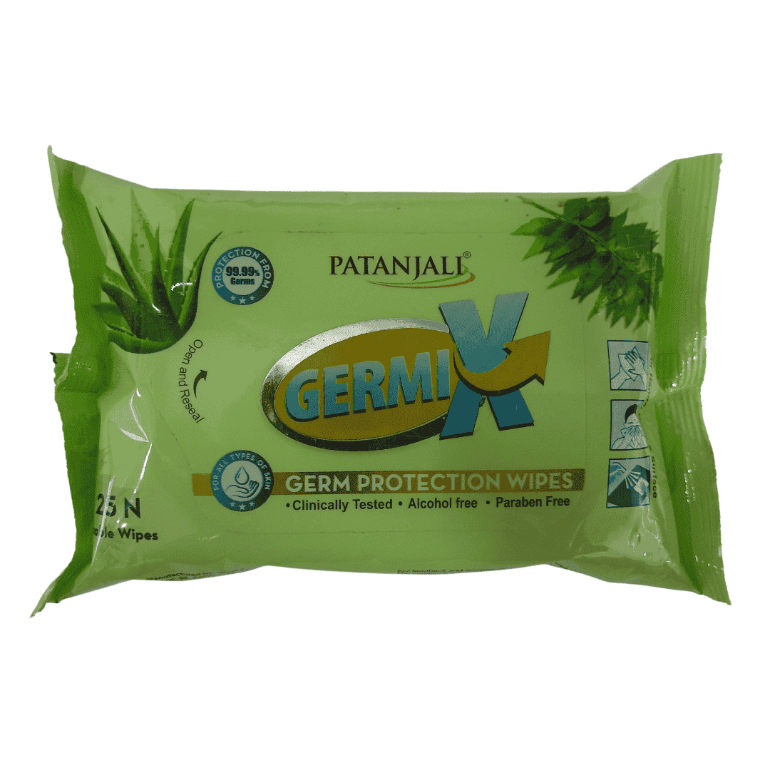 "Patanjali Germi X Aloevera Neem Germ protection wipes are made of high quality nonwoven spunlace fabric, which are Alcohol, Paraben and Silicon free & gentle to skin and keep us protected from 99.9% microbes. "