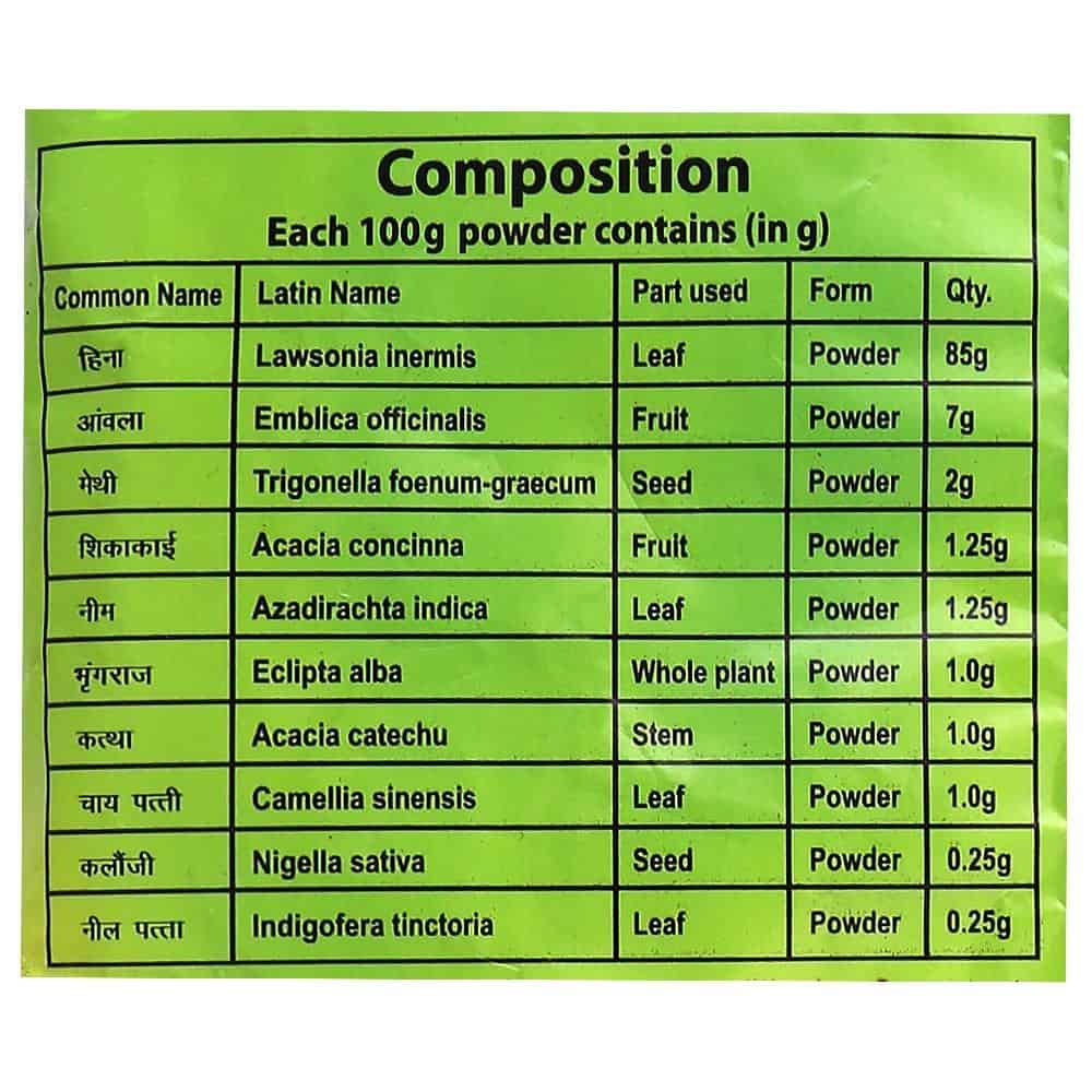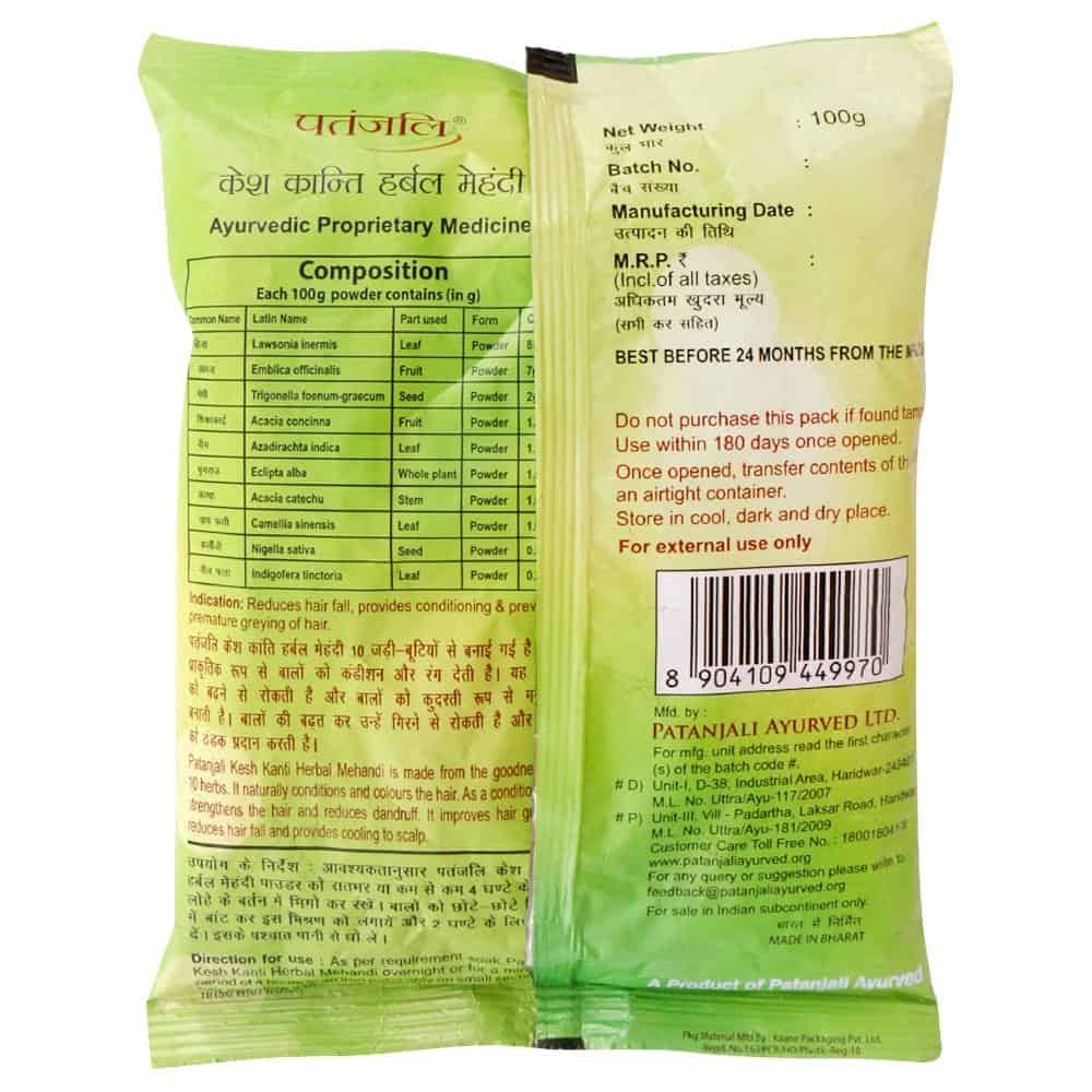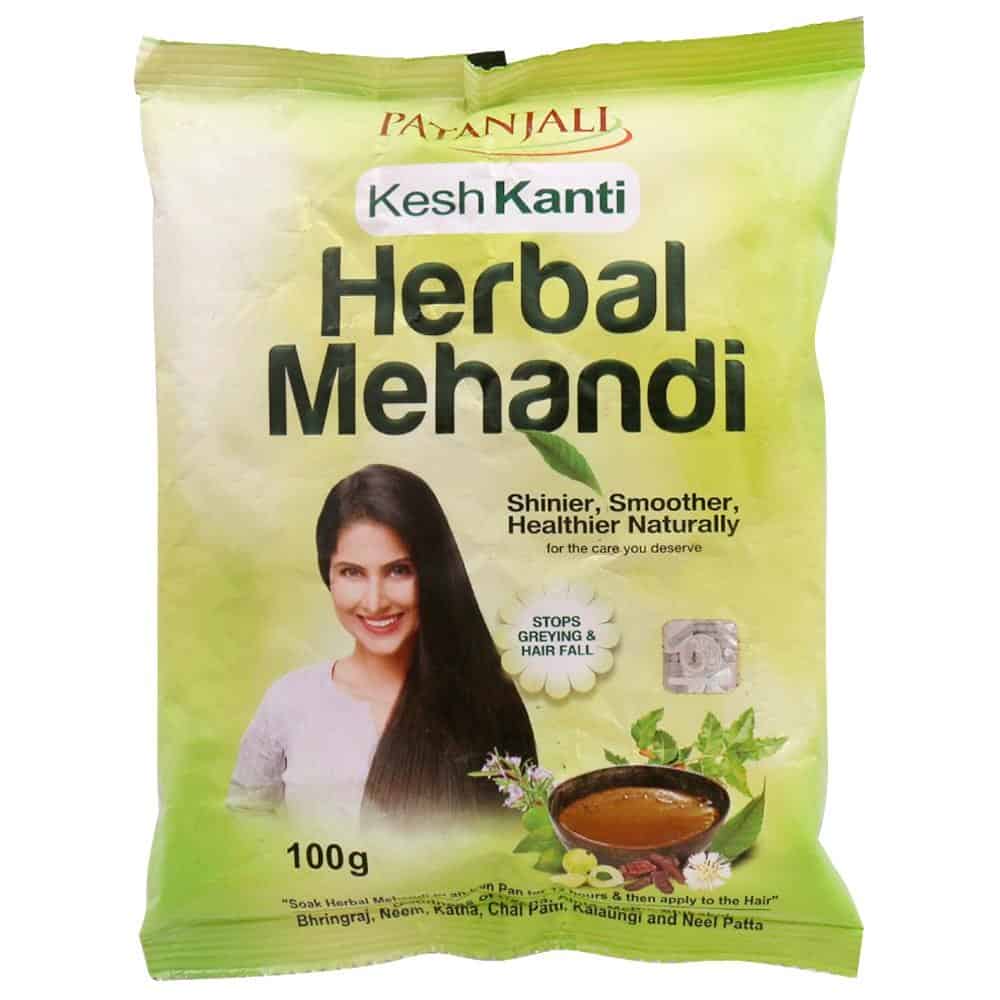 Patanjali Herbal Mehandi (Henna) is made from goodness of 10 herbs. It naturally conditions and colours the hair. It improves hair growth, reduces hair fall and provides cooling to scalp. Synergetic effect of herbs (Henna, Amla, Fenugreek, Shikakai, Neem, Bhringraj, Katha, Tea, Black Cumin, True indigo) naturally colour, strengthen and conditioned the hair.